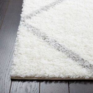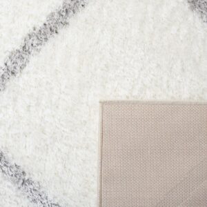 SAFAVIEH Tahoe Elwyn Trellis Shag Area Rug, 5′ x 7′, White/Grey