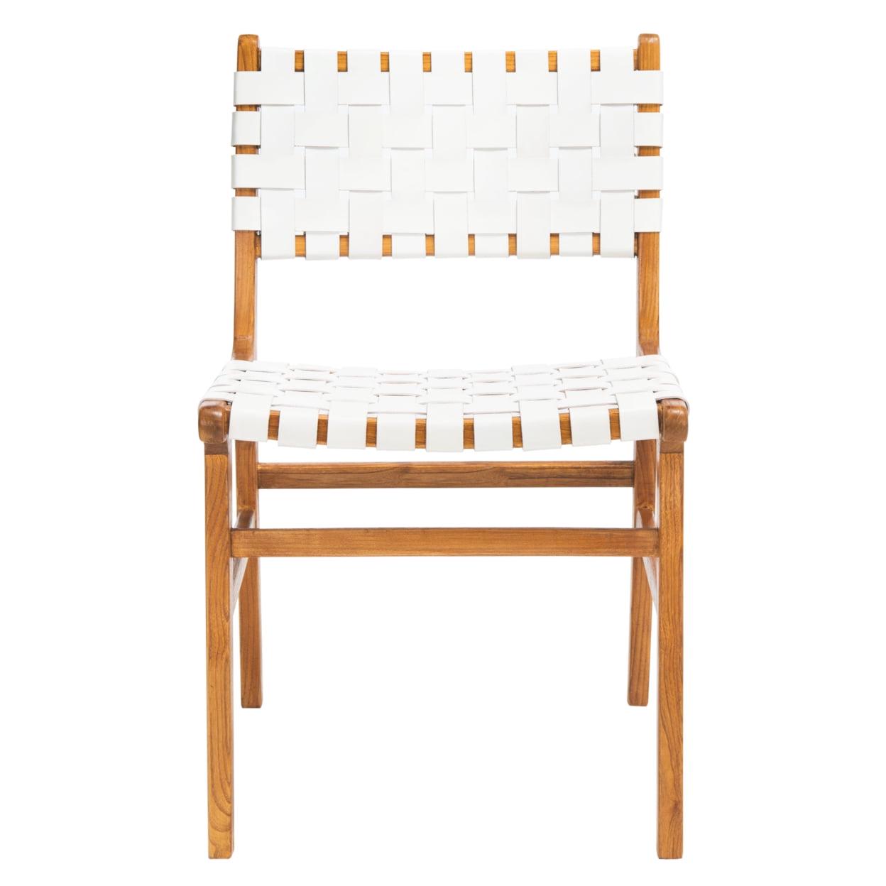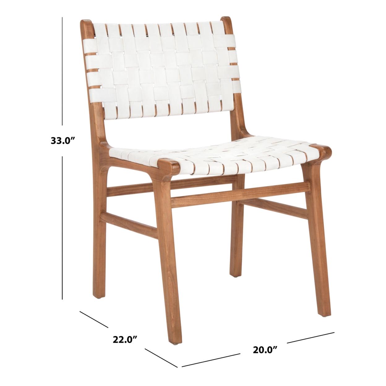 Bring the clean lines and warmth of Scandinavian style to the dining room with this contemporary woven leather dining chair. Perfect for minimalist or transitional décor, its luxurious white leather and natural wood finish bring elegance to the table.