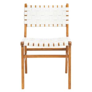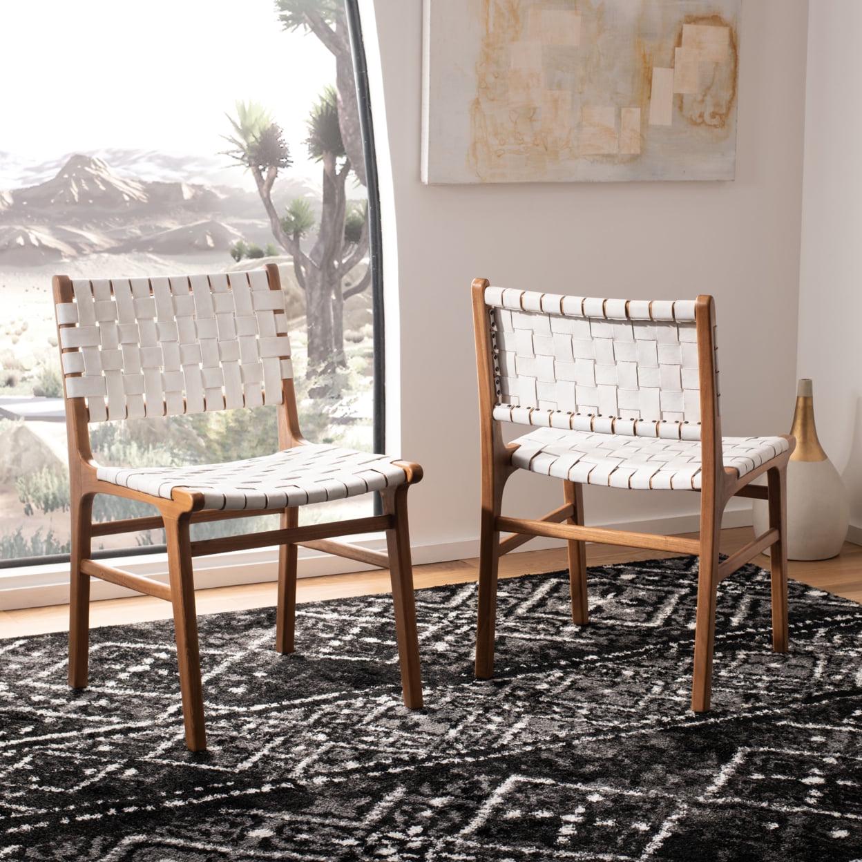 SAFAVIEH Taika Woven Leather Dining Chair, White/Natural, Set of 2