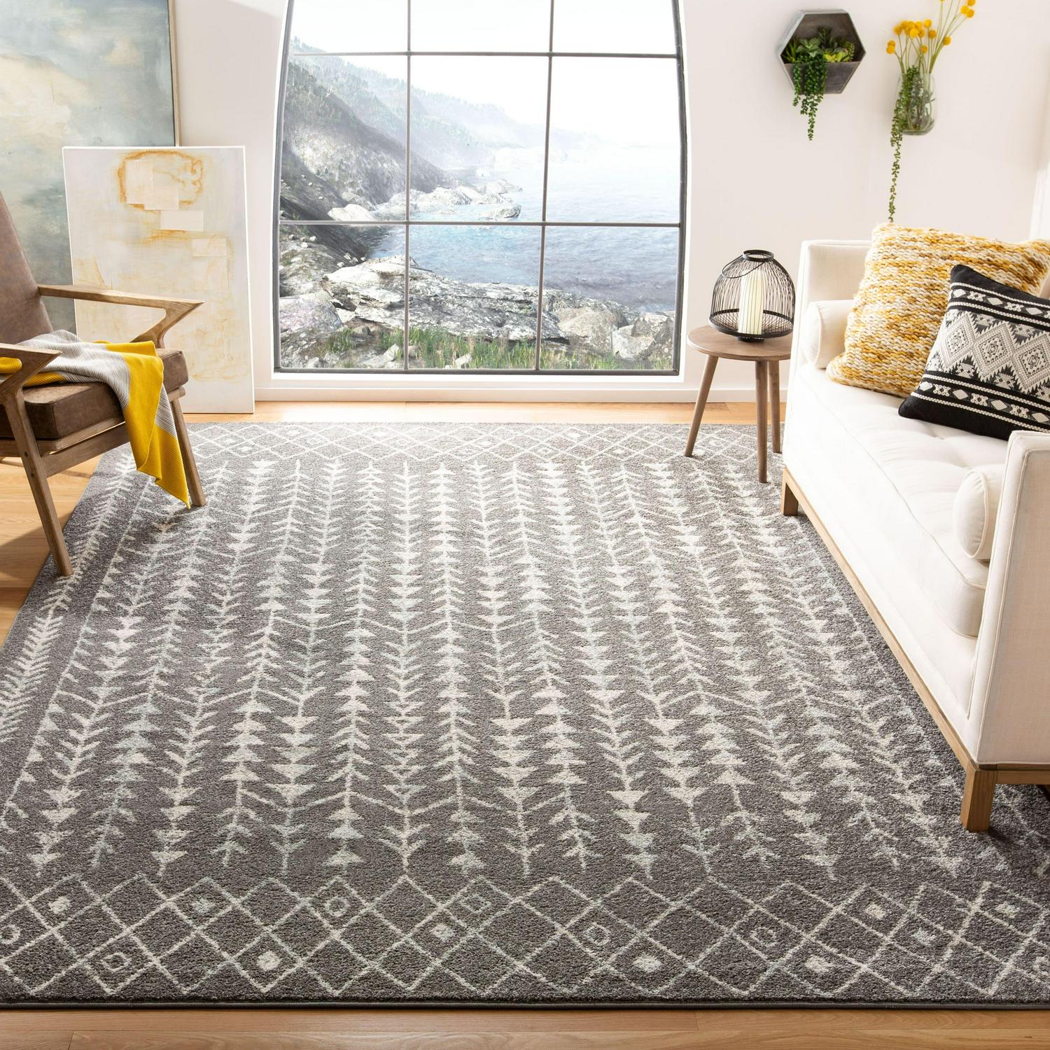 SAFAVIEH Tulum Goddard Moroccan Geometric Area Rug, Ivory/Grey, 5’3 x 7’6