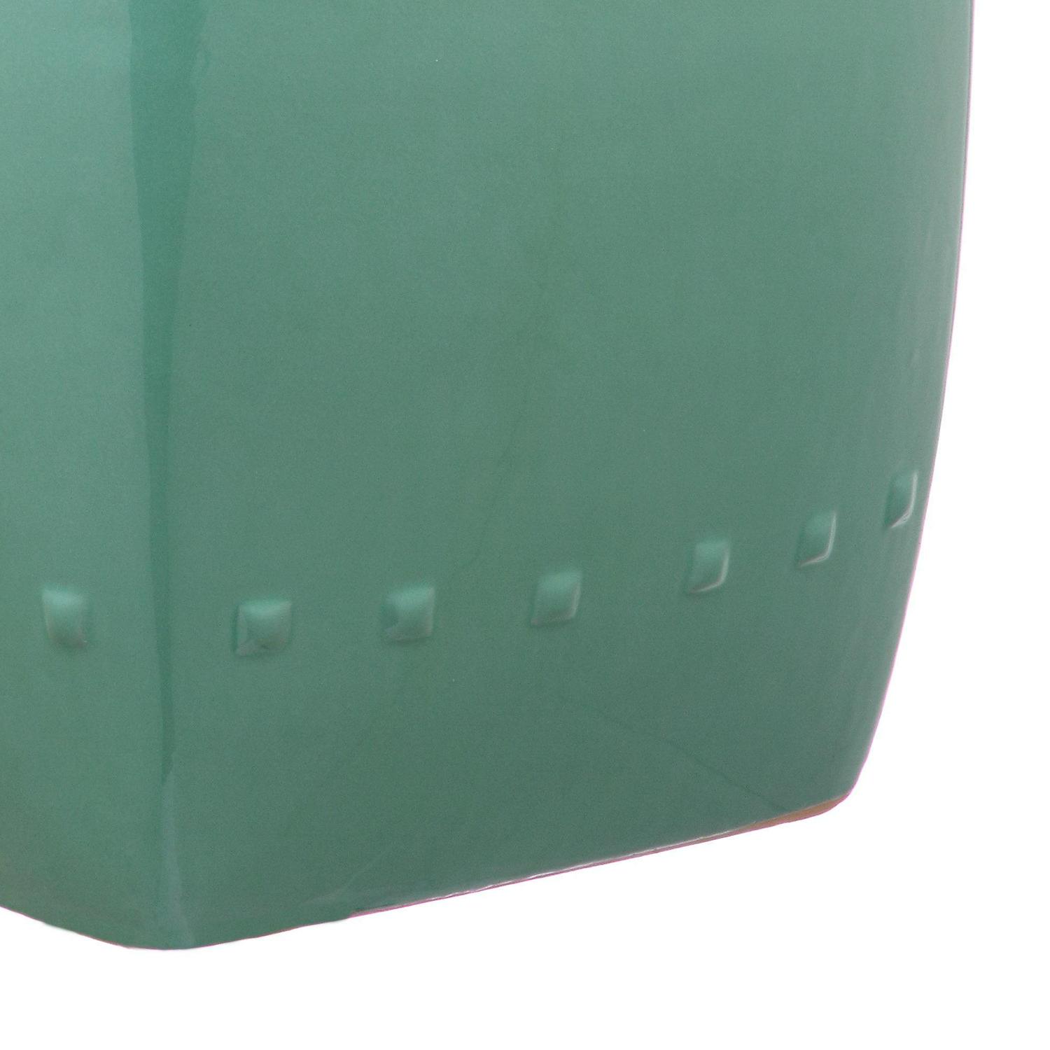 Clean, transitional styling defines the light blue ceramic Villa Garden Stool. Crafted with striking nail head details and smooth flat top, Villa is gorgeous both indoors and out.