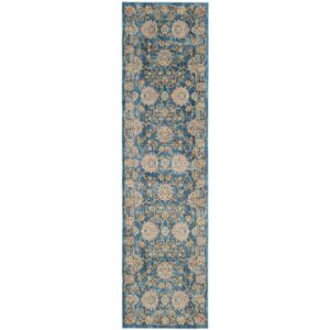 SAFAVIEH Vintage Persian Maggie Floral Bordered Rug Runner, Turquoise/Multi, 2’2 x 12′