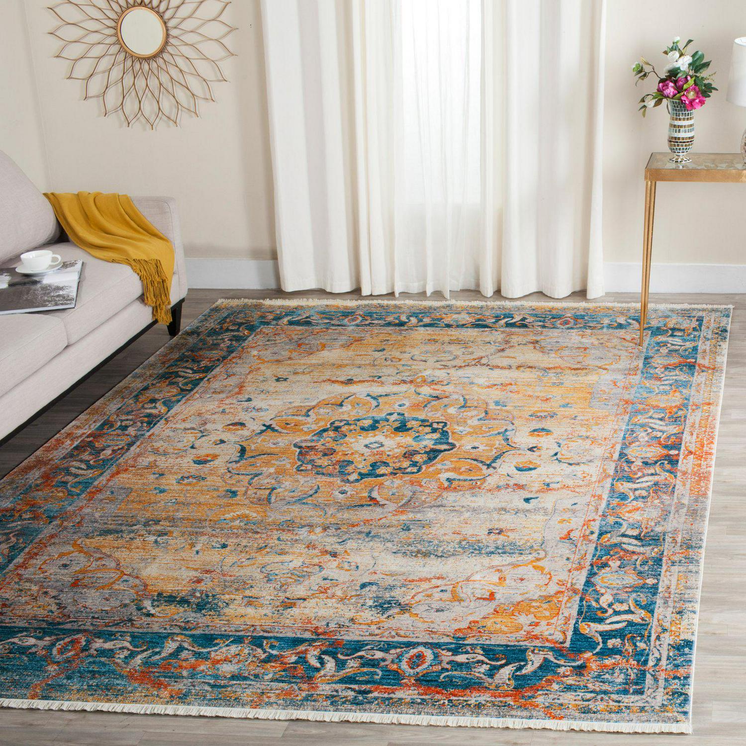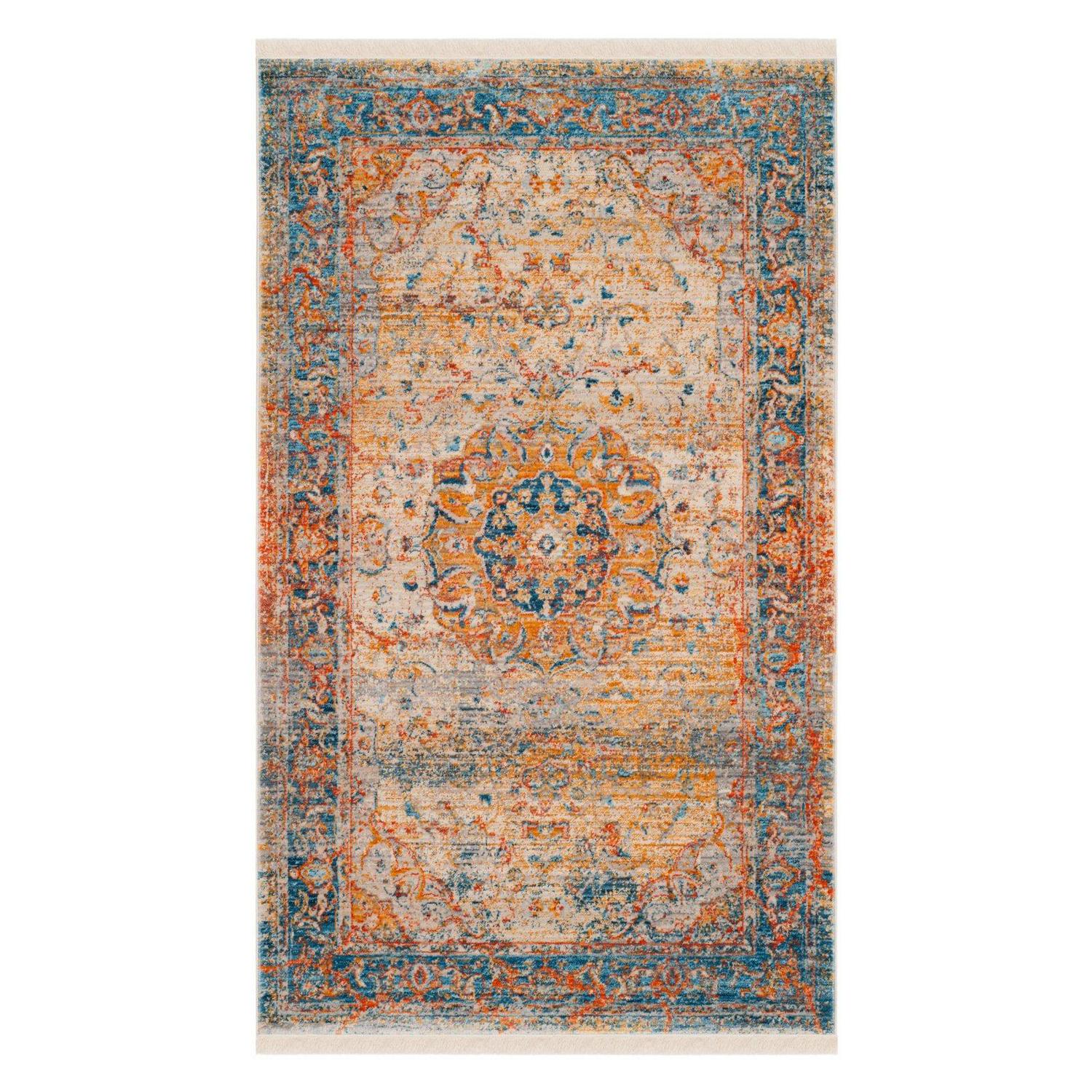 SAFAVIEH Vintage Persian Trina Traditional Polyester Area Rug, Blue/Multi, 6′ x 9′