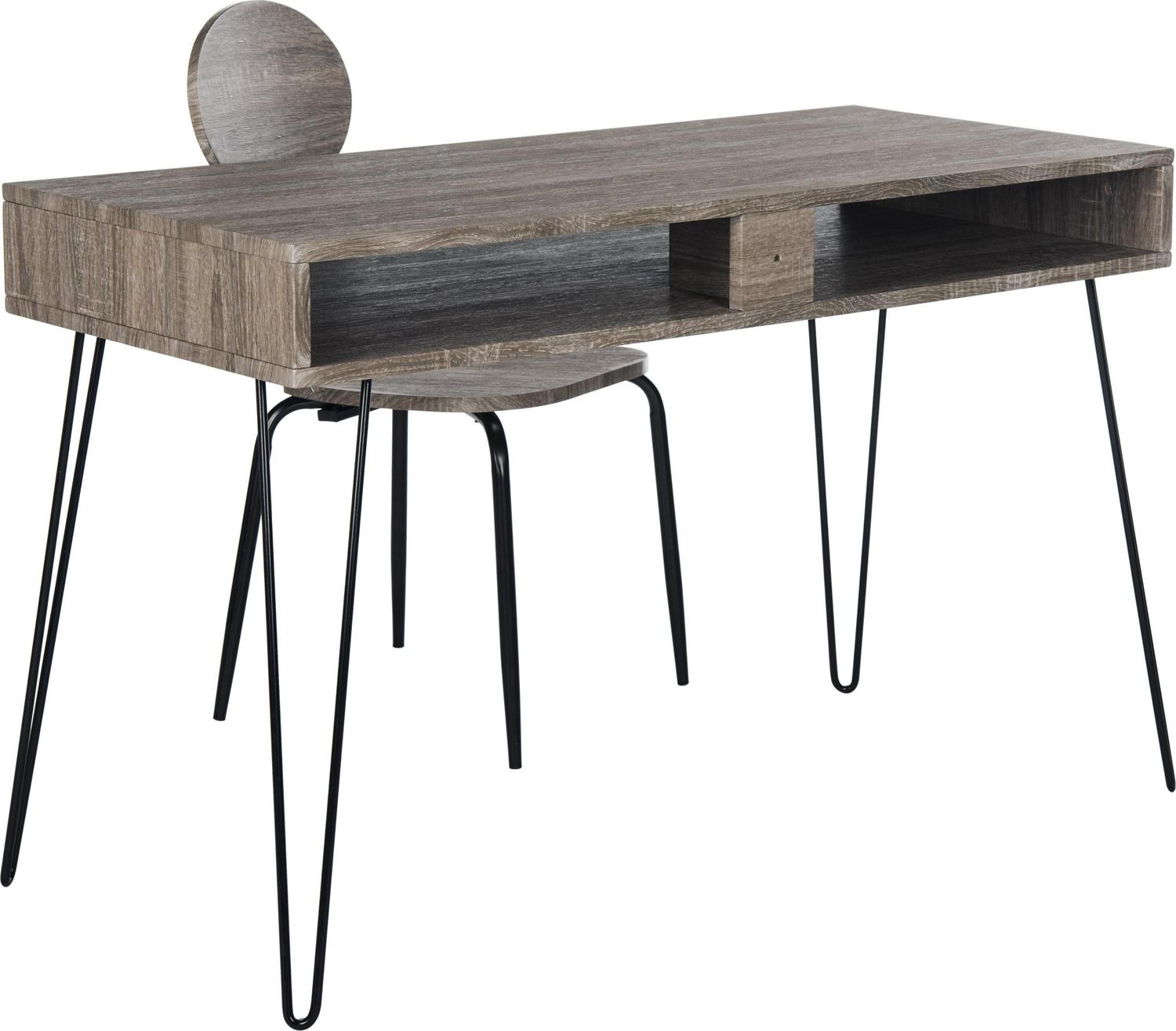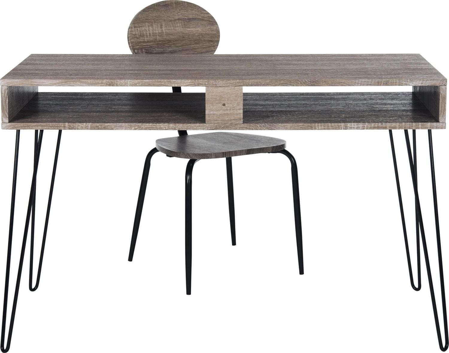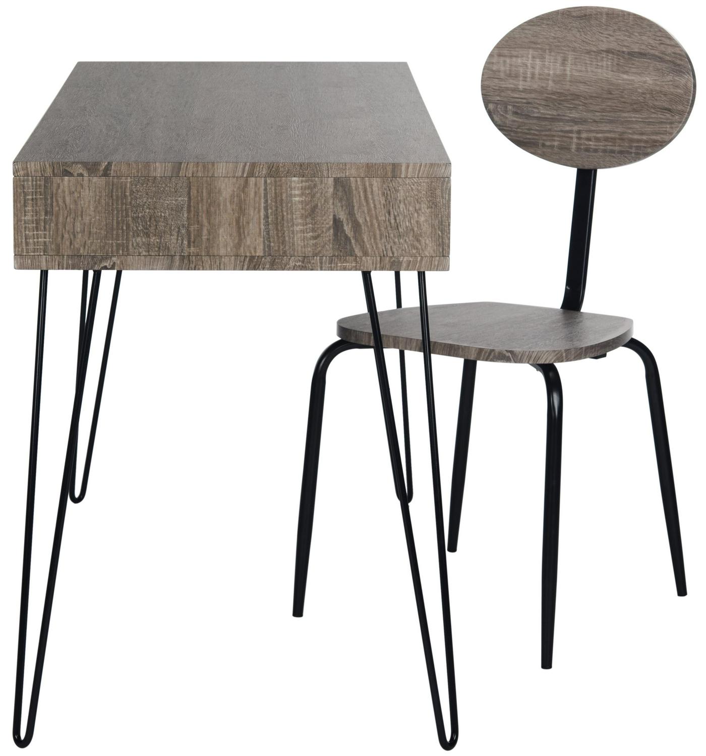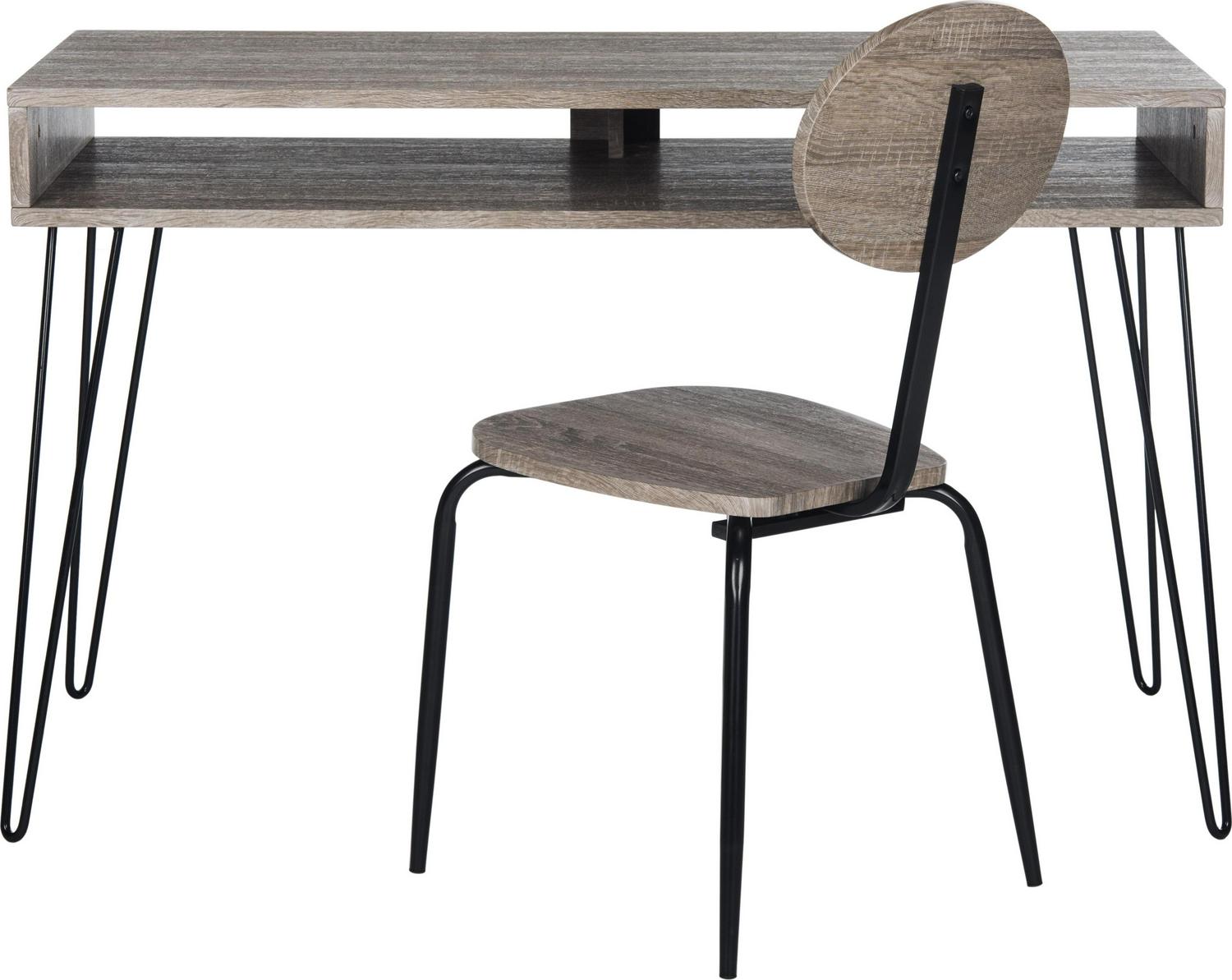 Safavieh Winta 47” Mid-Century Retro Writing Desk/Chair, Grey/Black