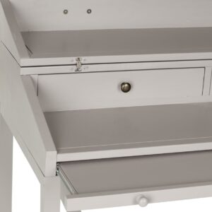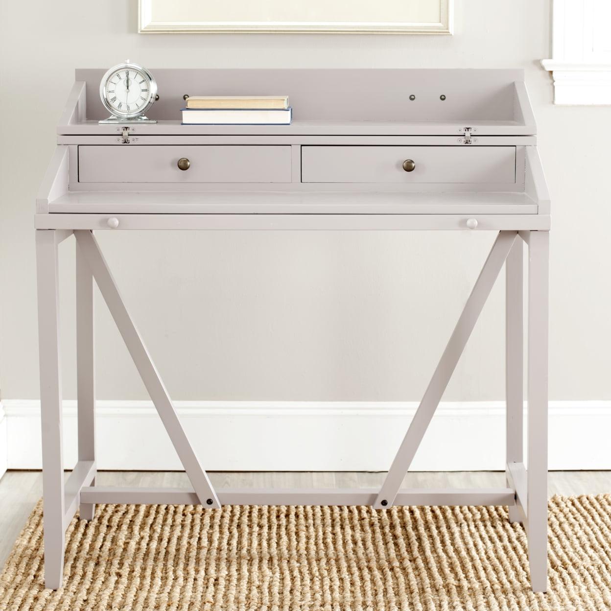 SAFAVIEH Wyatt Writing Desk With Pull-Out Table Quartz Grey Classic simplicity is paired with clever functionality in this Wyatt Writing Desk. With a top that closes, pull out writing table, and two hidden drawers, this discrete piece makes office work a decor smart breeze. A quartz grey finish makes Wyatt absolutely timeless.