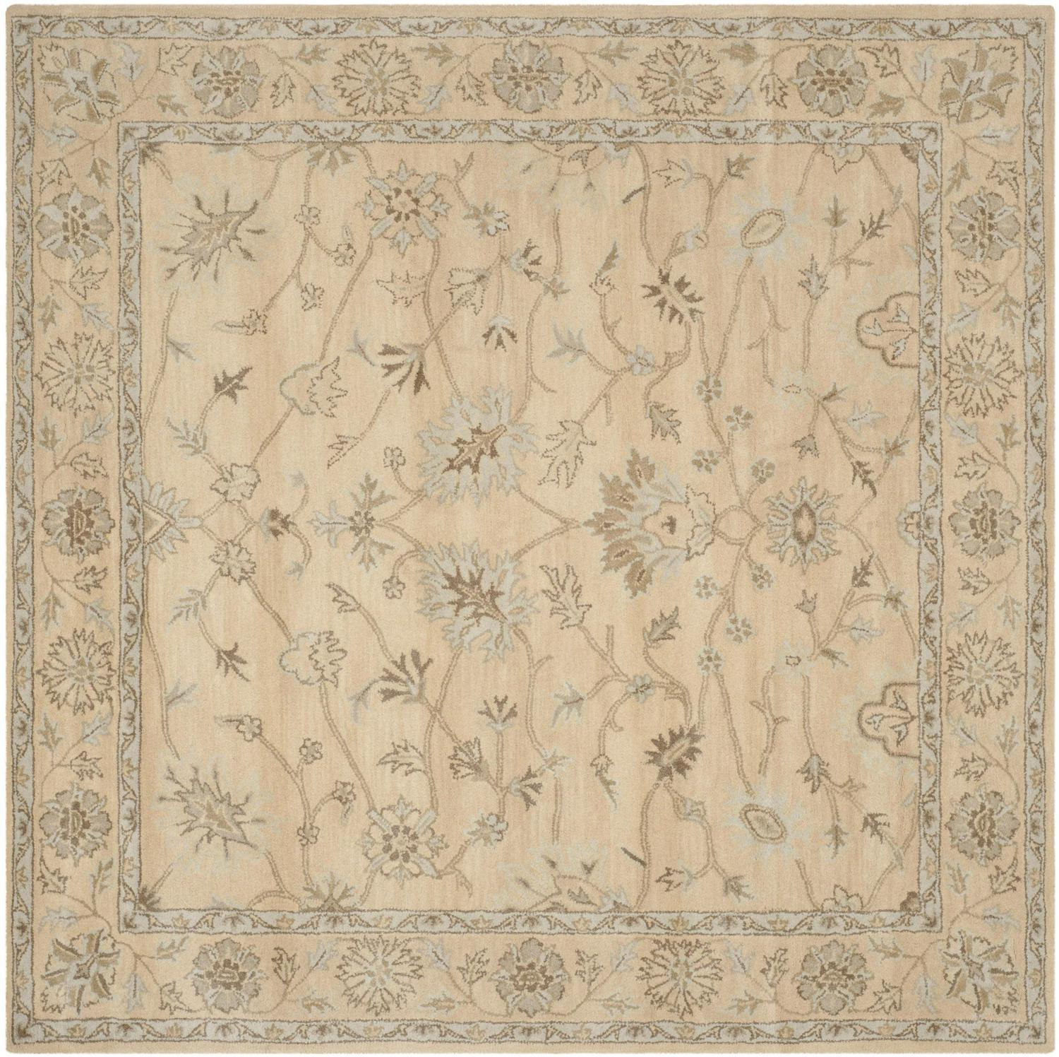 SAFAVIEH Wyndham Callista Floral Bordered Wool Area Rug, Light Gold, 7′ x 7′ Square