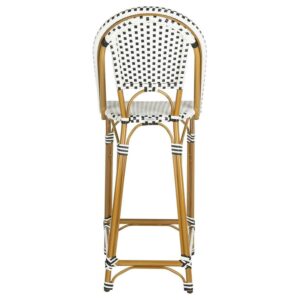 SAFAVIEH Zaid Outdoor Patio Stackable, Counterstool, Black/White/Brown, Set of 2