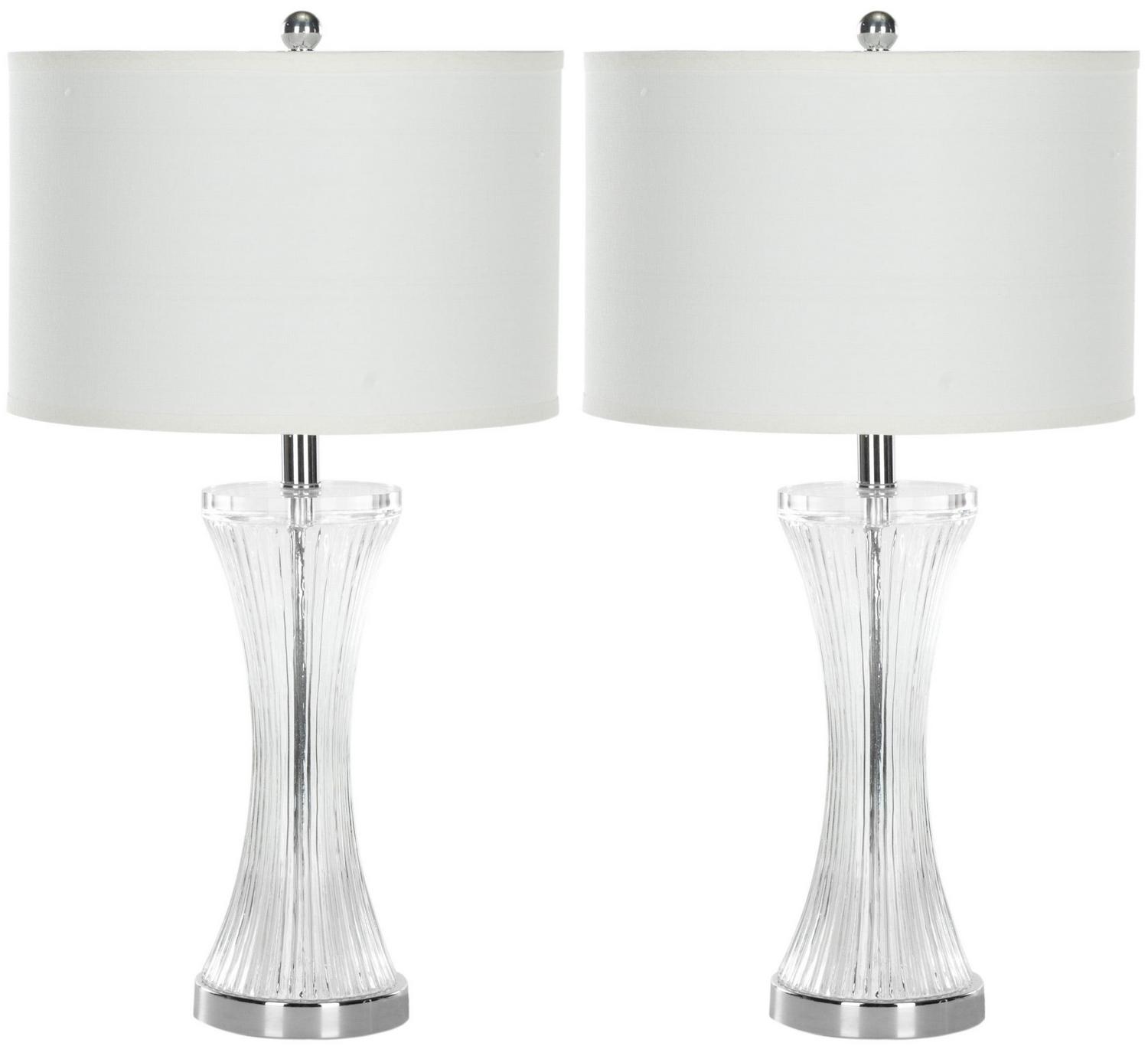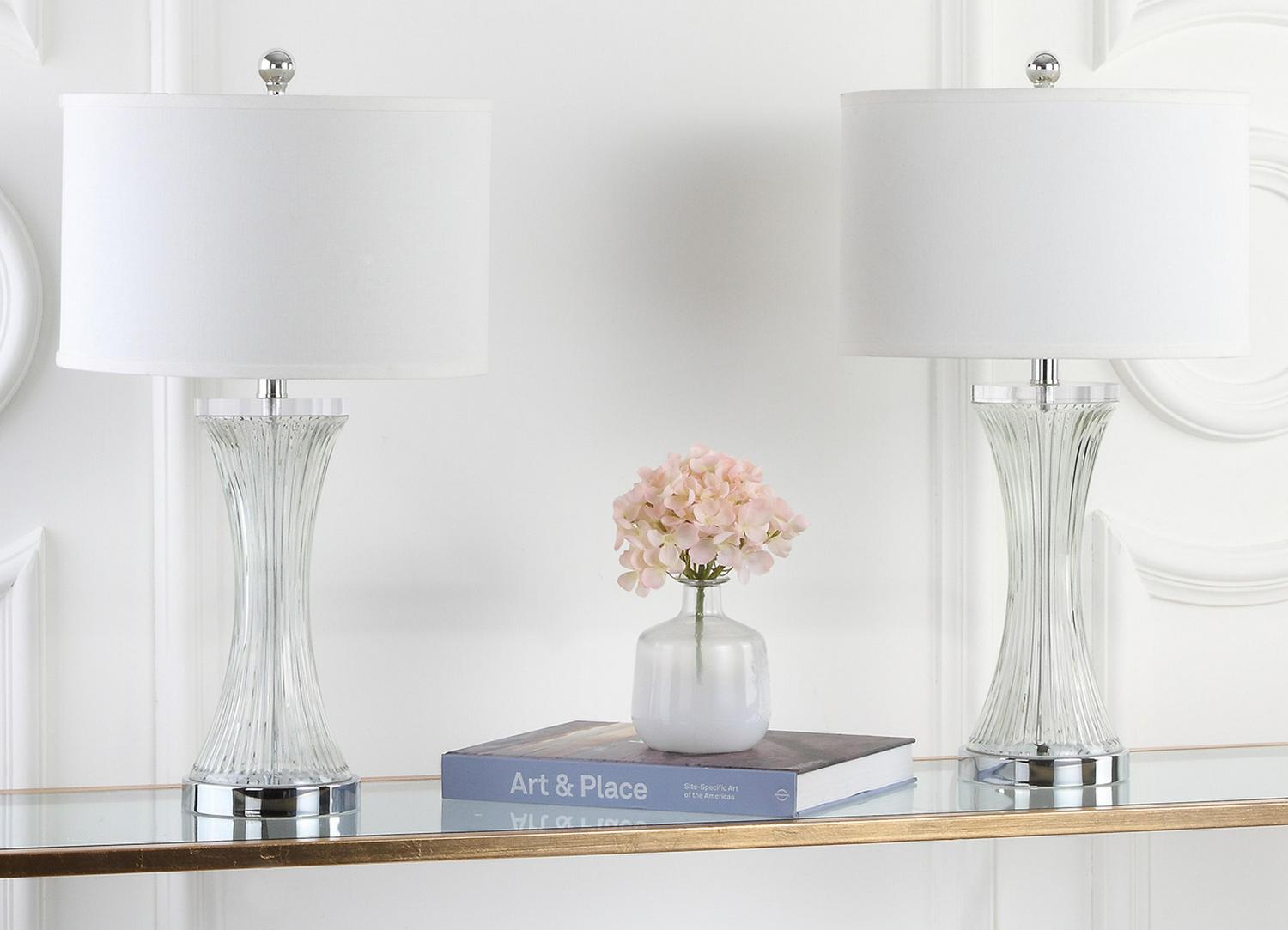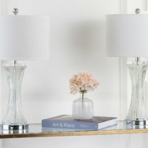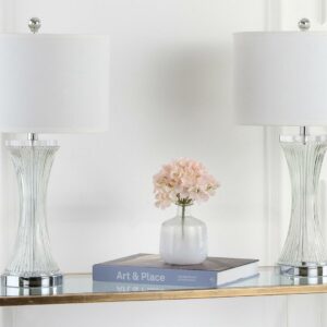 SAFAVIEH Zelda 25 in. Chrome Glass Table Lamp with Off-White Cotton Shade, Set of 2