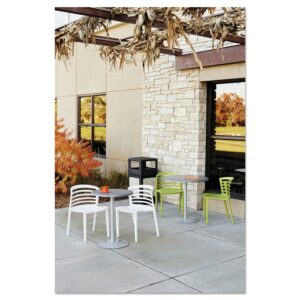 Recessed panel design for any first impression areas. High-density polyethylene plastic will not chip or dent. UV inhibitors limit fading in sunlight. Adaptable for anchoring and weighting devices. Uses standard 32″ x 44″ trash bags. Telescoping base hides bag. Panels feature fluted design with a recessed bottom.
