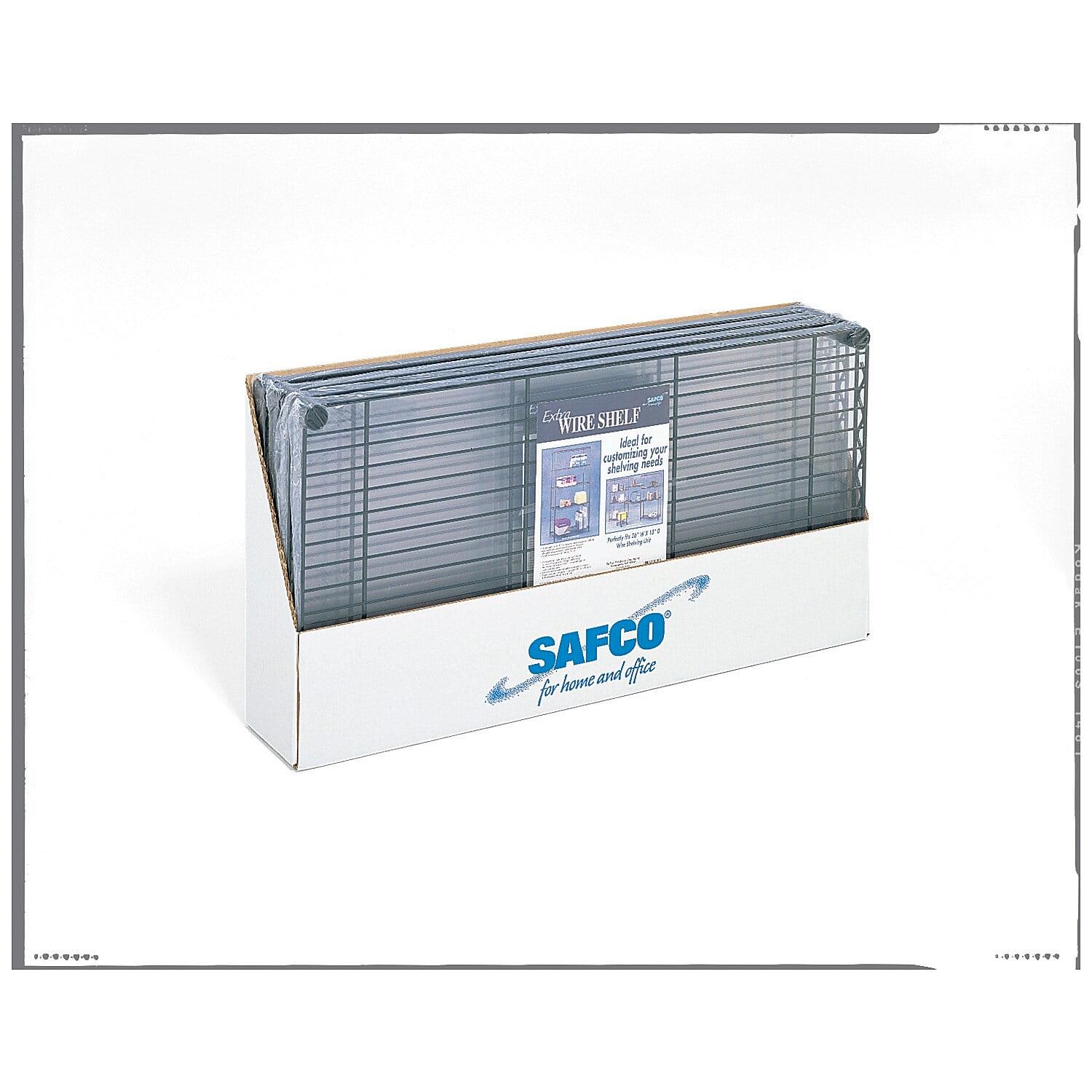 Extra shelves for Safco Industrial Wire Shelving offer a dust-free wire design. Flexible design allows 1″ shelf adjustments and modular expansion. Each shelf holds 1,000 lb. evenly distributed. Wire shelving is made from strong, welded steel construction (10-gauge shelf surface, 3-gauge frame, 16-gauge posts, 6-gauge wave pattern) with a durable powder-coat finish. Open wire design permits air circulation and prevents dust accumulation. Starter unit (sold separately) includes four shelves, four posts and snap-together clips.