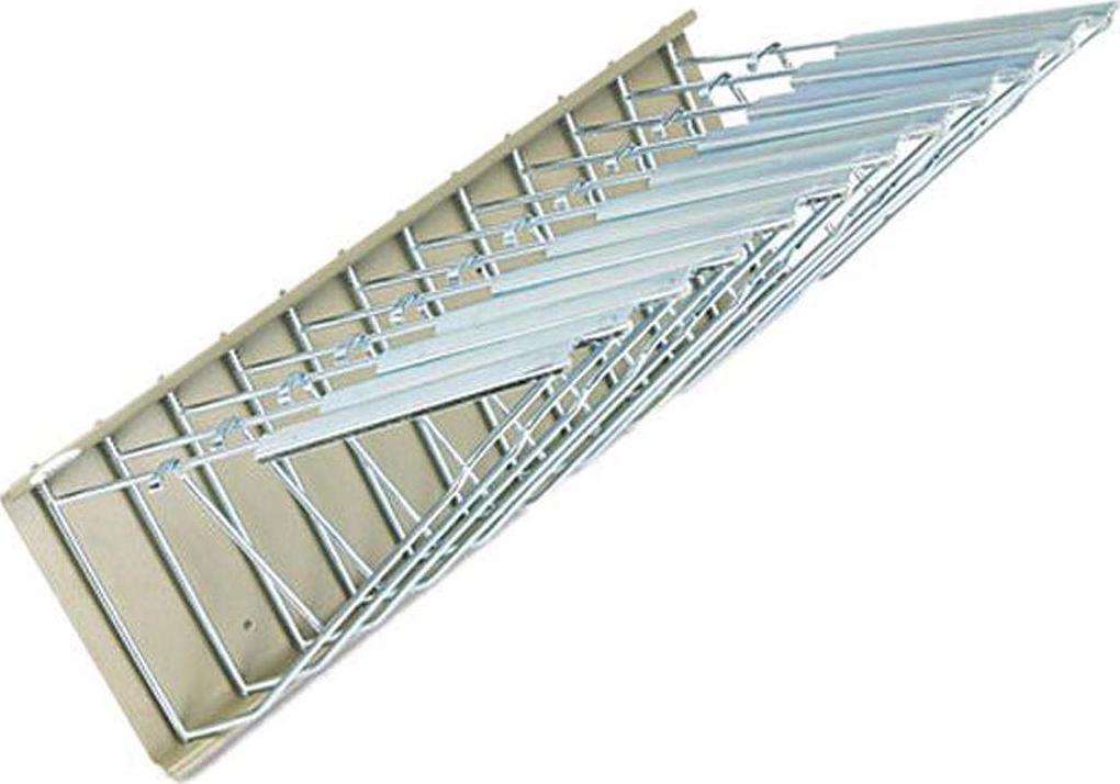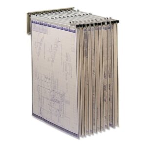 Safco Pivot Wall Rack, stand comes with 12 quick-reference pivot brackets. Rack will hold any length sheet as long as the unit is mounted high enough. Width is 24″ and height is 9½ “. Holds up to 12 hanging clamps (clamps not included). Mounting hardware included. Tropic sand color. 17 lbs.