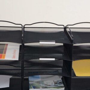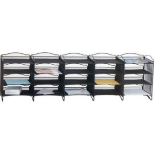 Onyx Mesh Mail Sorter in classic Black offer an intriguing design and a smart way to make efficiency more convenient. Features simple, modern design made from Steel Mesh Construction. The 20 oversized 11″W x 12 1/2″D x 3 3/4″H letter compartments can stack up to 3 high. Includes 20 labels and label holders for organization convenience.