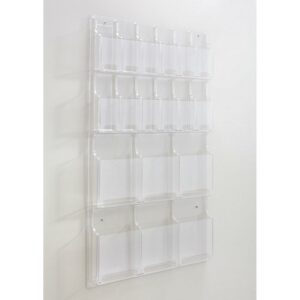 Think outside the box by looking in! Reveal design displays literature clearly. Each pocket holds 1-3/4″ of printed material. Thermoformed one-piece units have no sharp edges or corners. The displays are wall mountable with hardware included. Wire partition hangers fit all Reveal Displays. Optional Floor Stand (5619BL)