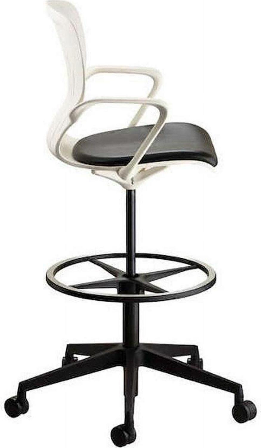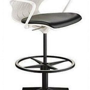 – Material(s): Nylon (base and casters), Steel (cylinder), Plastic (seat back), Vinyl (seat cushion), Aluminum (footring), Plastic, steel.