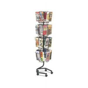 This rotating wheeled brochure display rack is ideal for displaying brochures, pamphlets, resources, and magazines. The clean wire look allows for full-front view of literature. Includes 32 compartments that measure 4-1/2″W x 1-3/8″ deep to handle large display needs. Includes 4 viewing levels that rotate independently for easy identification and selection. Welded wire construction. Base has five dual-wheel casters (two locking). Compact knockdown design sets up quickly and easily without tools.