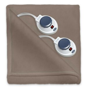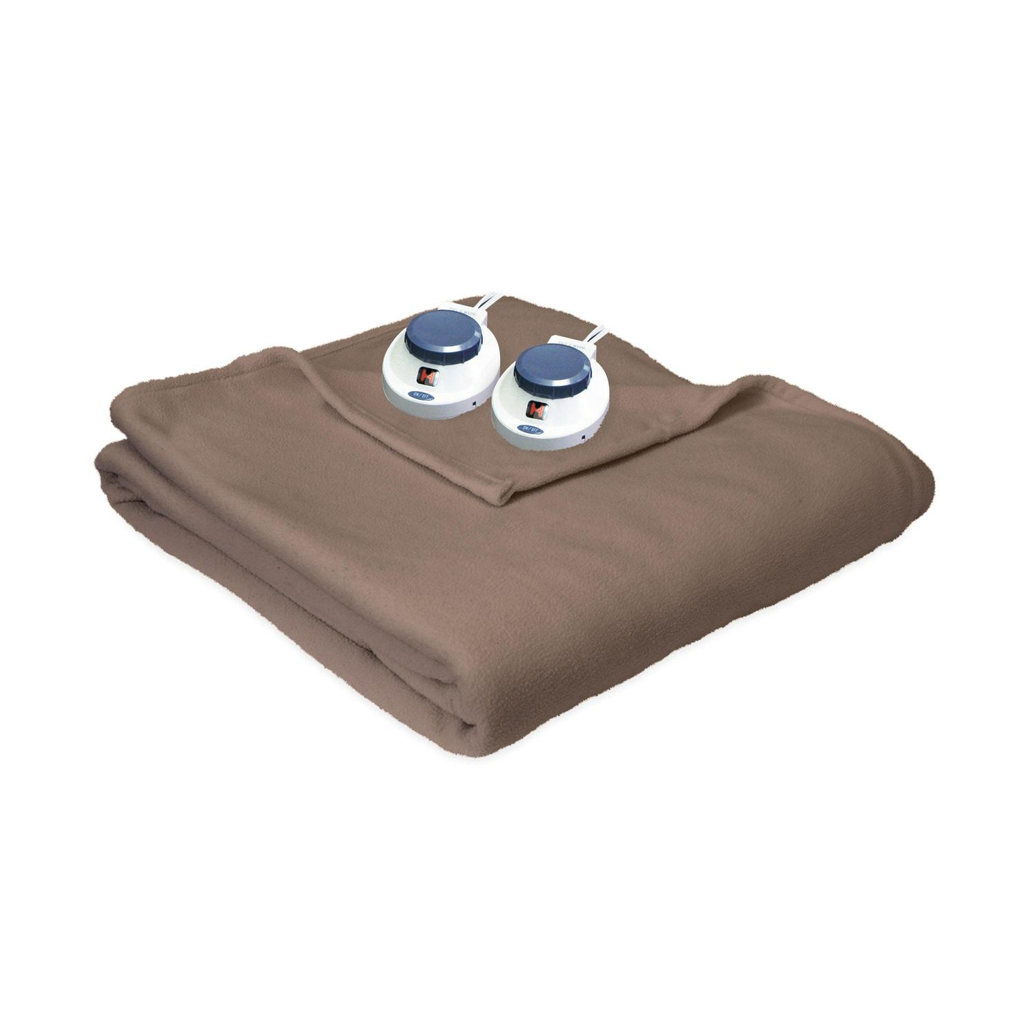 Enjoy the comfort and warmth of the Soft Heat Micro-Fleece Electric Heated Blanket by Perfect Fit. Made of soft, cozy micro fleece, it will make you snuggle deeper on those cold days. The Safe and Warm technology features Invisiwire. These wires are 5 times thinner than other electric heated blankets. In addition, our wires are wrapped with a soft polyester fiberfill that makes them virtually undetectable, providing a more even distribution of heat. No detectable cords when you make the bed. Don’t worry about the wires getting damaged during washing. They are designed to retain their shape even after wash. Our patented Soft Heat technology converts 120 volt AC current to less than 25 volts of DC current. This creates a blanket that is safe in the presence of moisture and will not harm pets. Rest assured that you are warmed with a technology that is safe for your home. Enjoy the perfect solution to those cold nights with The World’s Safest Electric Blanket. Easy to use controllers have 11 settings, allowing you to adjust the temperature to sleep at your comfort level. Our safety feature includes a 10 hour auto Shut-Off and over-heat protection. 23 Ft. cord. 5-year limited warranty. Turning your thermostat down by 10-15 degrees for a minimum of 8 hours is an effective way to lower energy costs by 5-15%. Available in Chocolate, Natural, Beige, Slate Blue, Gray