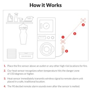 – Compact and easily applied heat sensors with companion alarm that detect fires where they are most likely to occur at an outlet
