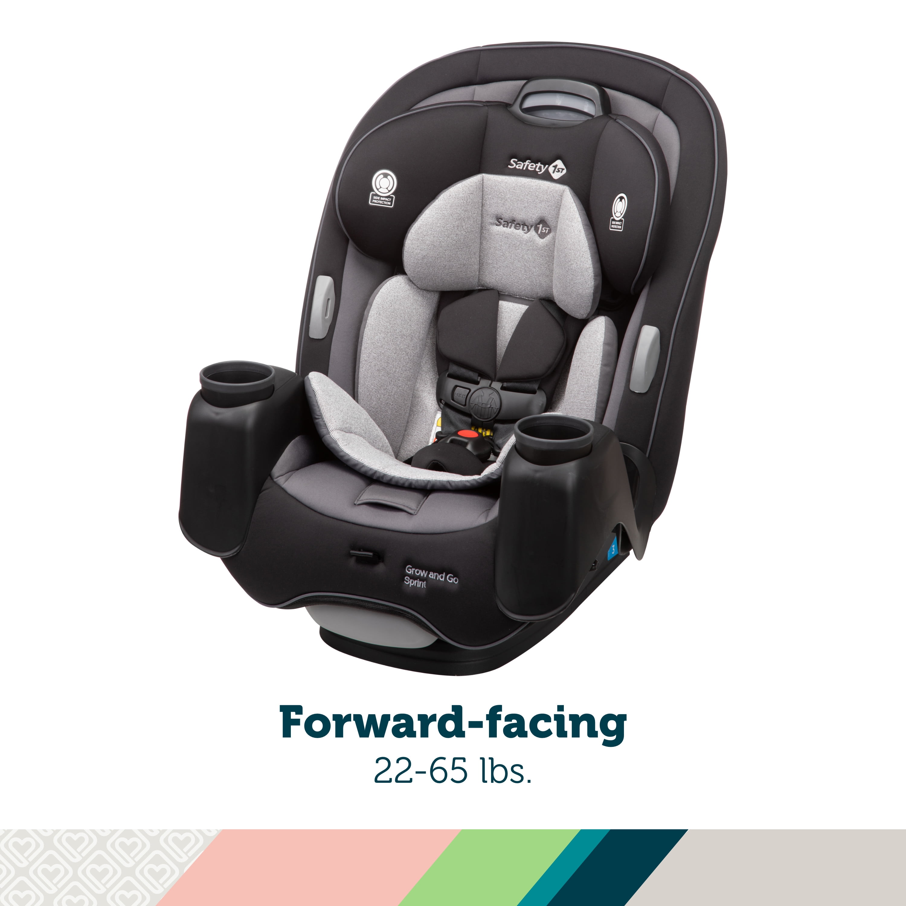 Get the car seat that’s built to grow! From your first ride together coming home from the hospital to soccer day car pools, the Grow and Go™ Sprint All-in-One Car Seat will give your child a safe and more comfortable ride. Featuring the new single hand adjustable headrest, you can adjust the headrest and harness as your little one gets bigger with just one hand and in one quick motion, without re-threading the harness or re-installing the car seat. Harness holders keep the harness straps out of the way, making it easier to get your child in and out of the car seat. As your tiny baby grows into a big kid, messes are bound to happen, but we’ve made cleaning easy. The seat pad snaps off easily without removing the harness and is machine washable and dryer safe. Dual cup holders transport favorite drinks and snacks and are easily removable and dishwasher safe. When your child is ready to use the vehicle seat belts, remove the harness for belt-positioning booster mode, suitable from 40-100 lbs. Buckling up with the vehicle belt is easy with the visible belt path guiding the way. Built for child comfort, the Grow and Go™ Sprint includes two removable grow-with-baby pillows to give your new travel companion a snug fit. Dual armrests provide added comfort for older kids on long car rides. The Grow and Go provides more comfort for parents too, taking up less space when placed rear-facing, giving up to 7 inches more legroom for parents in the front seat. Safety 1st believes parenting should have fewer worries and more joyful moments. As the first and only leader in child safety, Safety 1st is here to give you peace of mind so you can spend less time worrying and more time enjoying every first you experience with your child.