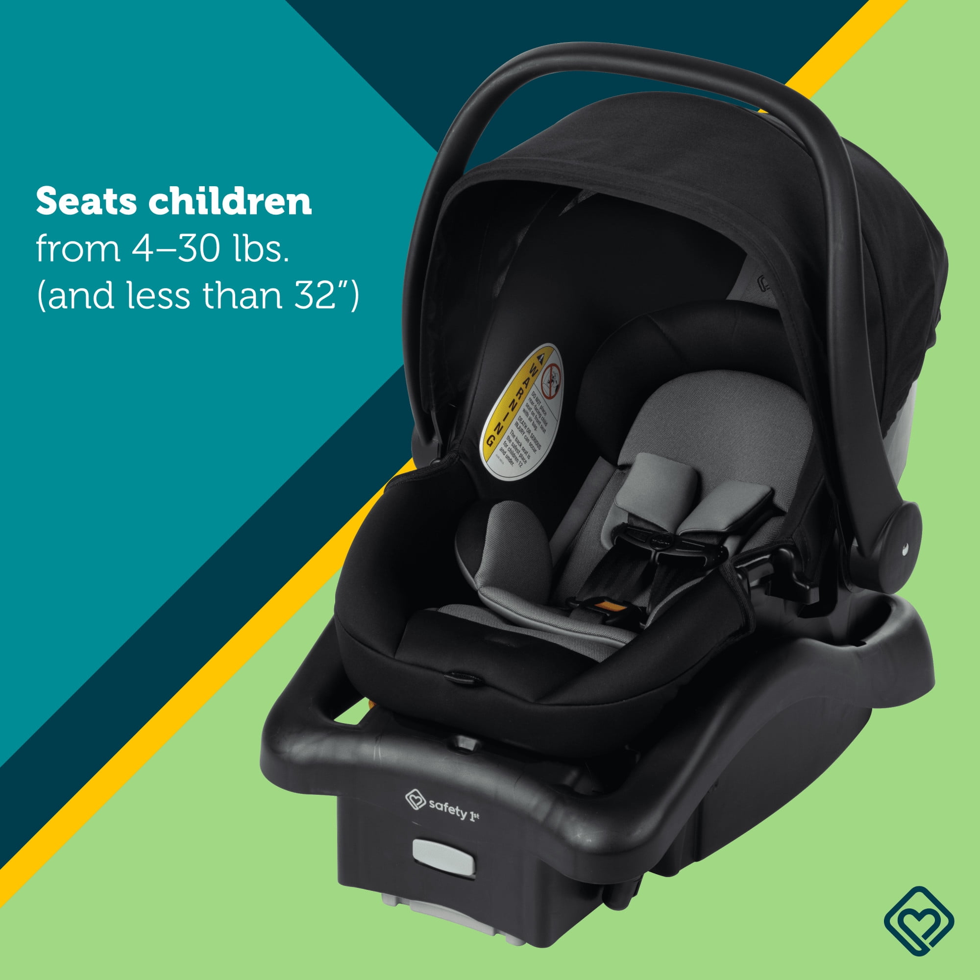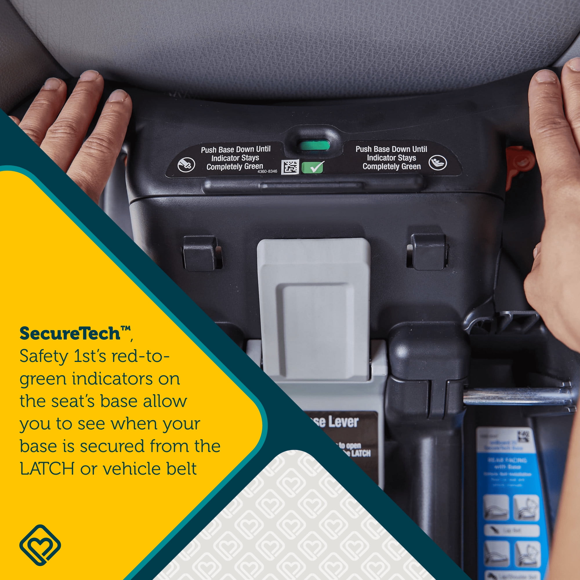 SecureTech™, Safety 1st’s red-to-green indicators on the seat’s base allow you to see when your base is secured from the LATCH or vehicle belt Quick, easy installation every time—in 3 simple steps, you can attach the base to the vehicle seat with the self-retracting one-click Insta-Latch™ connectors Seats children from 4–30 lbs. (and less than 32″) Lightweight design at under 8 lbs. Rigorously crash and side-impact tested to meet safety standards Side Impact Protection with deep side walls and energy absorbing foam Machine-washable and dryer-safe seat pad Adjustable base for the right fit to your car LATCH equipped and airplane ready