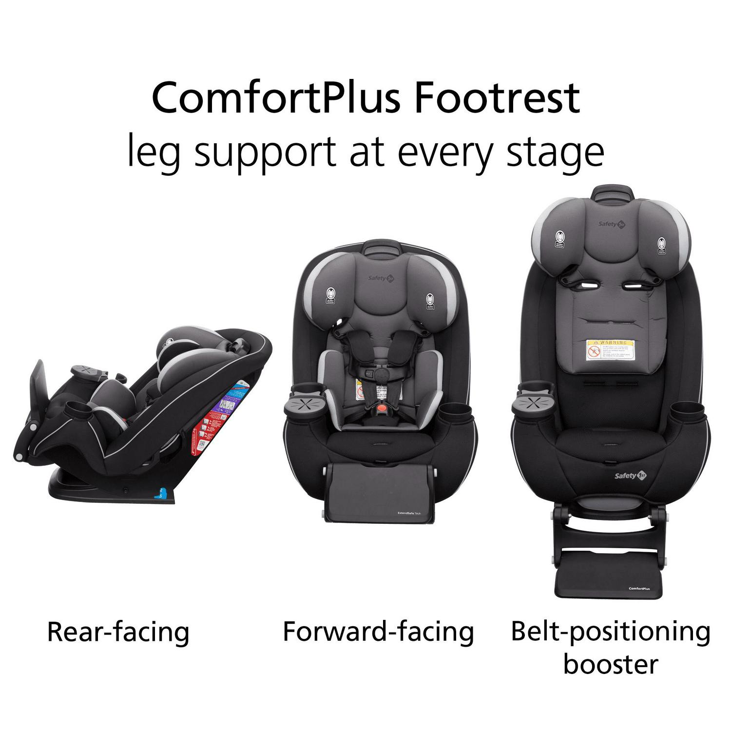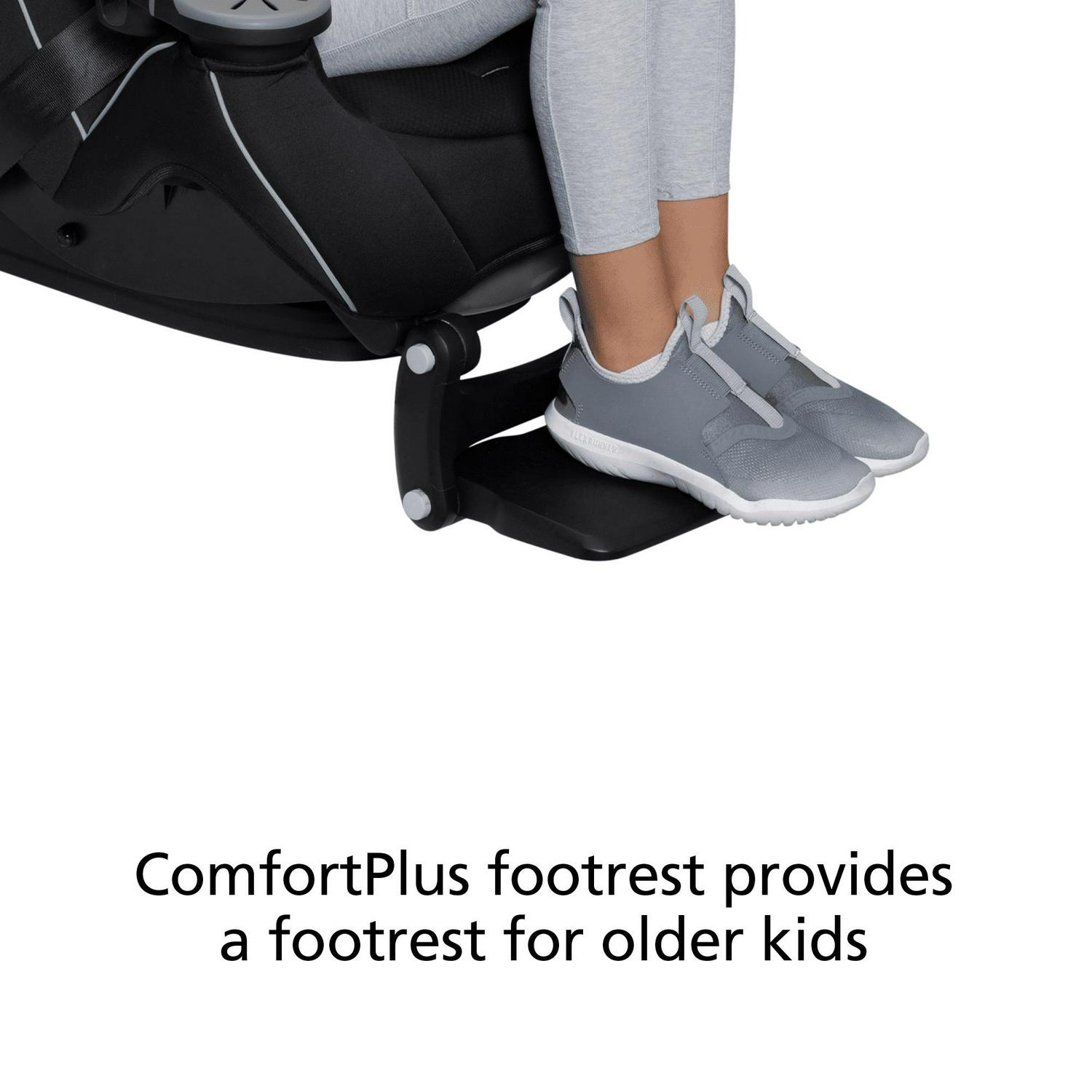 – ComfortPlus footrest provides up to 7 inches of additional leg room in rear-facing mode, allowing kids to ride more comfortably up to the max rear-facing limit