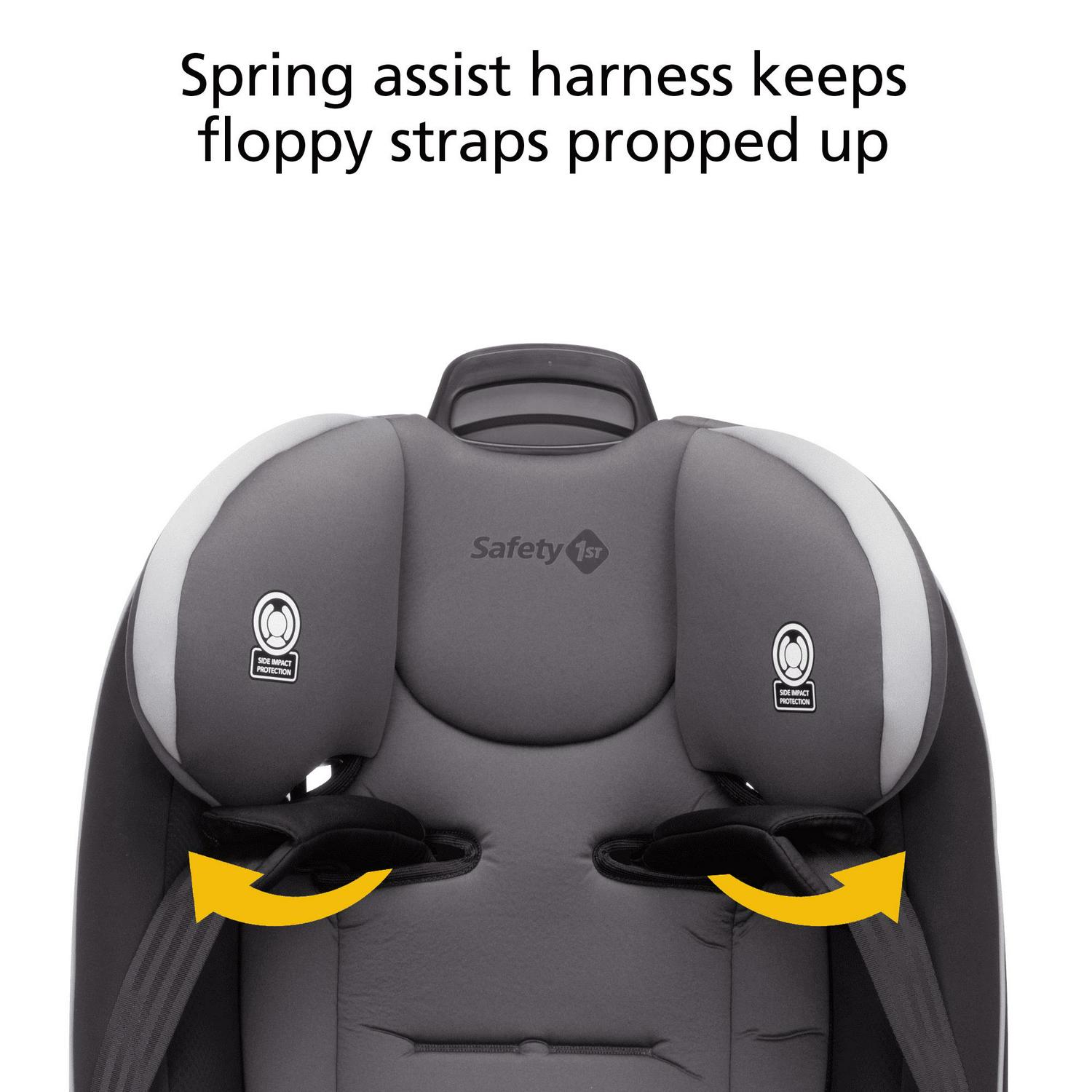 – Spring assist EZ out harness system keeps floppy straps propped up, making it easy to get child in and out of the seat