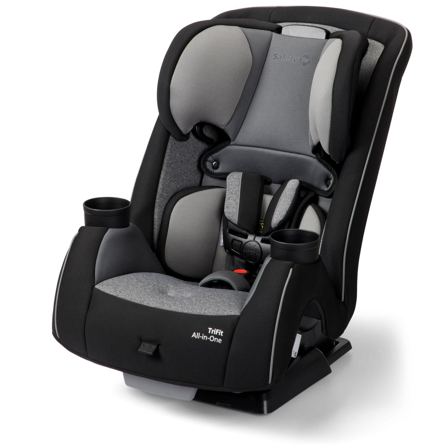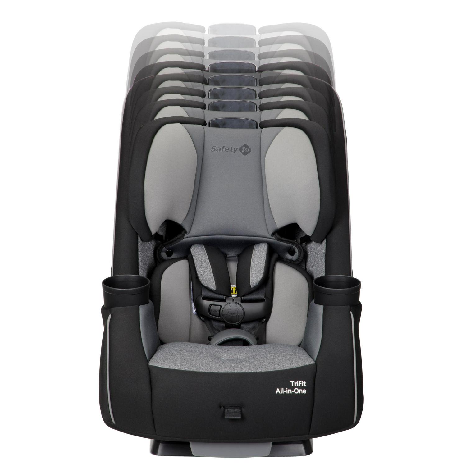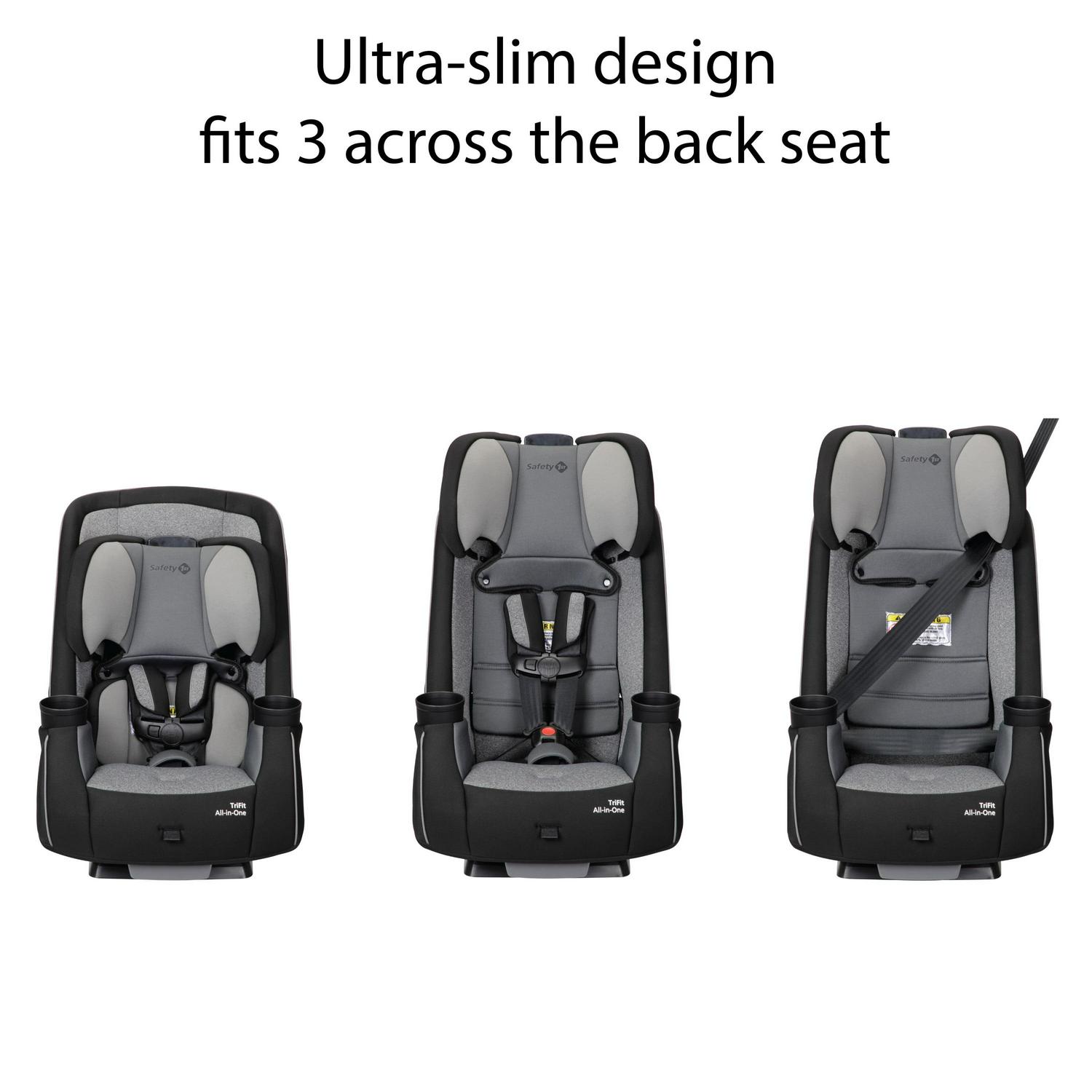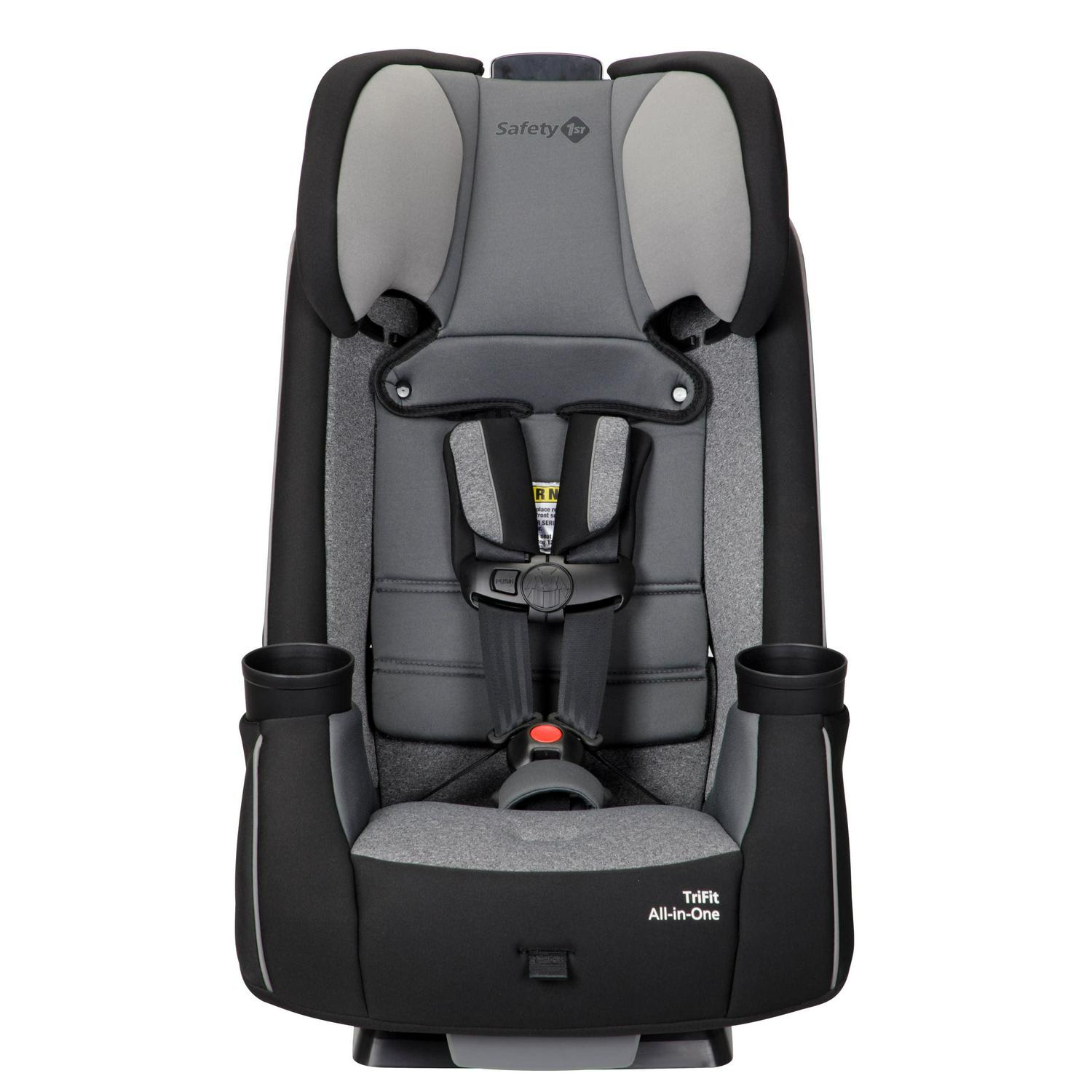 The Safety 1st TriFit All-in-One Convertible Car Seat is built to grow with your child while keeping them safe and comfortable on the road. With three modes of use rear-facing, front-facing, and belt-positioning booster the Safety 1st TriFit is ready to take your baby home from the hospital or take your big kid to soccer practice. The seat s ultra-slim design allows for fitting three across the back seat without sacrificing safety or comfort. With a 3-position adjustable base, a 1-hand-adjustable headrest and harness system, and machine-washable and dryable fabric, it s the only car seat your child will need from birth through age 10.