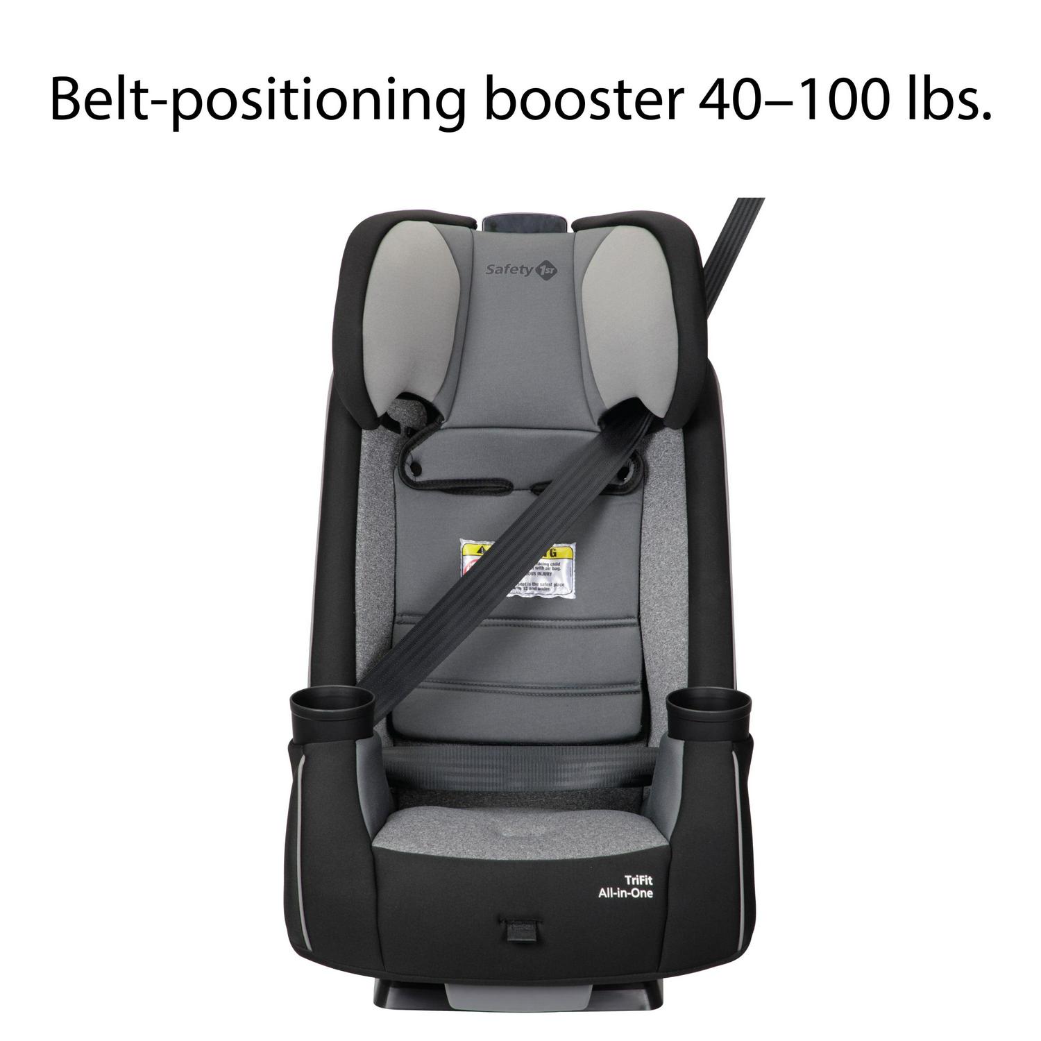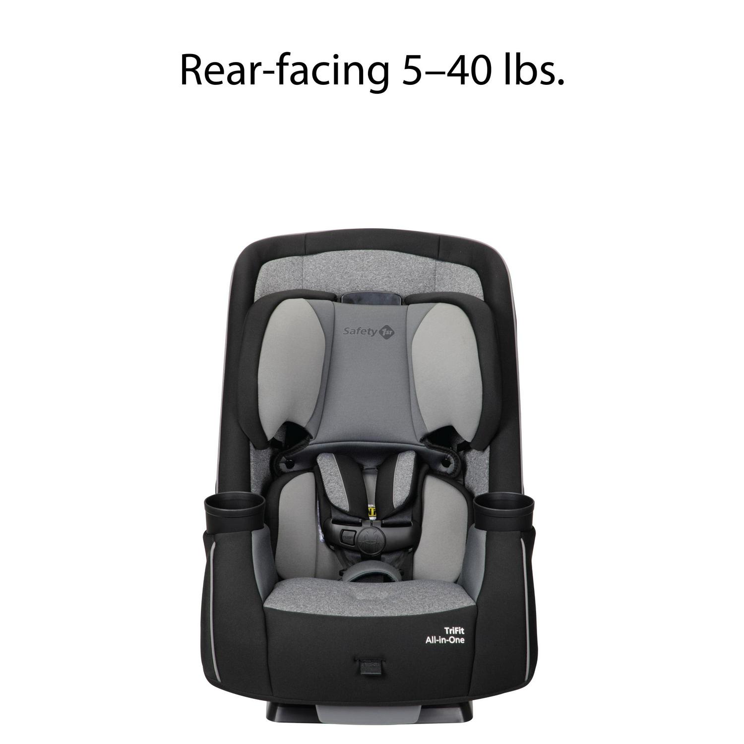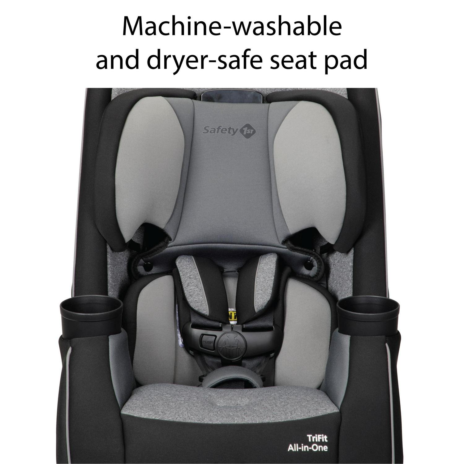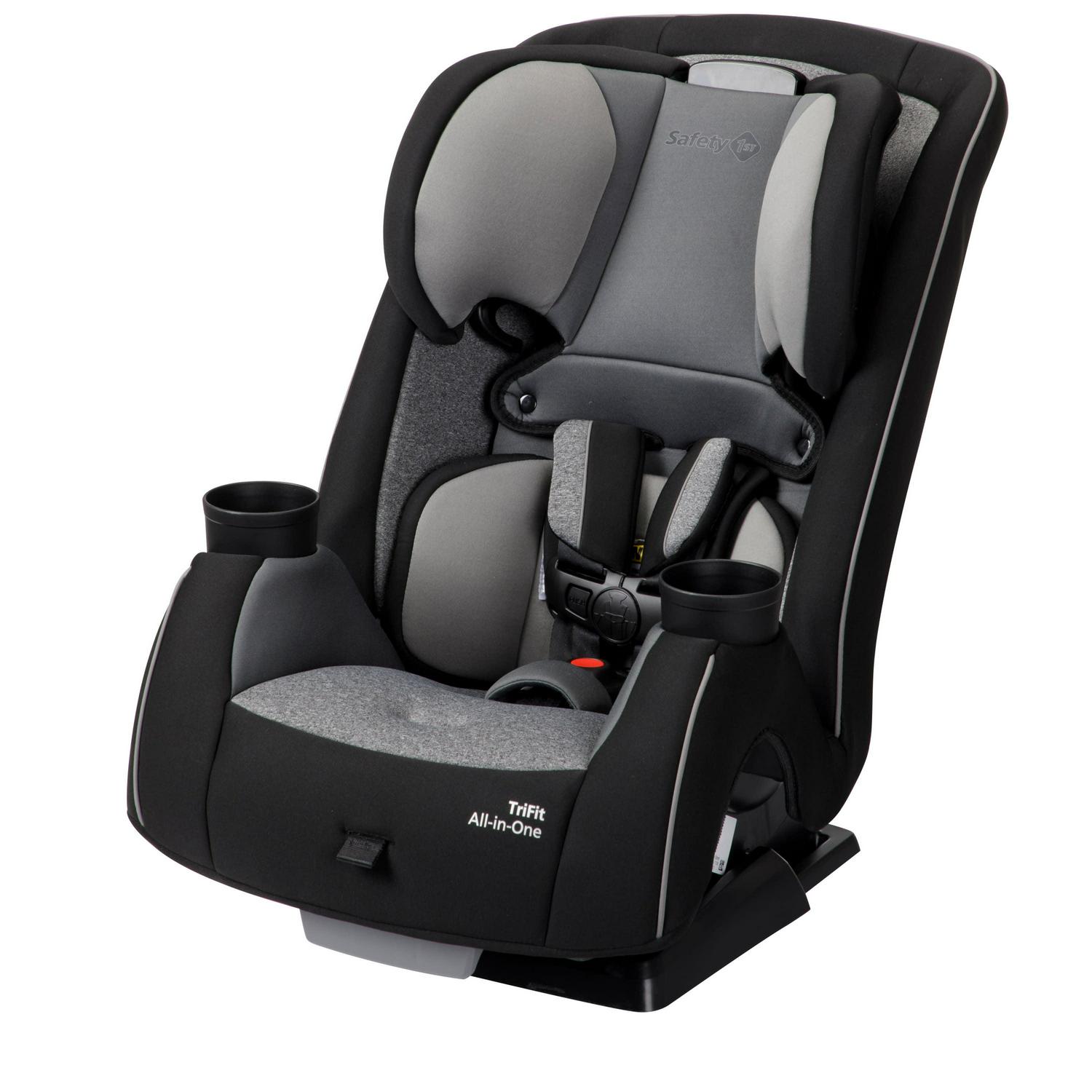 The Safety 1st TriFit All-in-One Convertible Car Seat is built to grow with your child while keeping them safe and comfortable on the road. With three modes of use rear-facing, front-facing, and belt-positioning booster the Safety 1st TriFit is ready to take your baby home from the hospital or take your big kid to soccer practice. The seat s ultra-slim design allows for fitting three across the back seat without sacrificing safety or comfort. With a 3-position adjustable base, a 1-hand-adjustable headrest and harness system, and machine-washable and dryable fabric, it s the only car seat your child will need from birth through age 10.