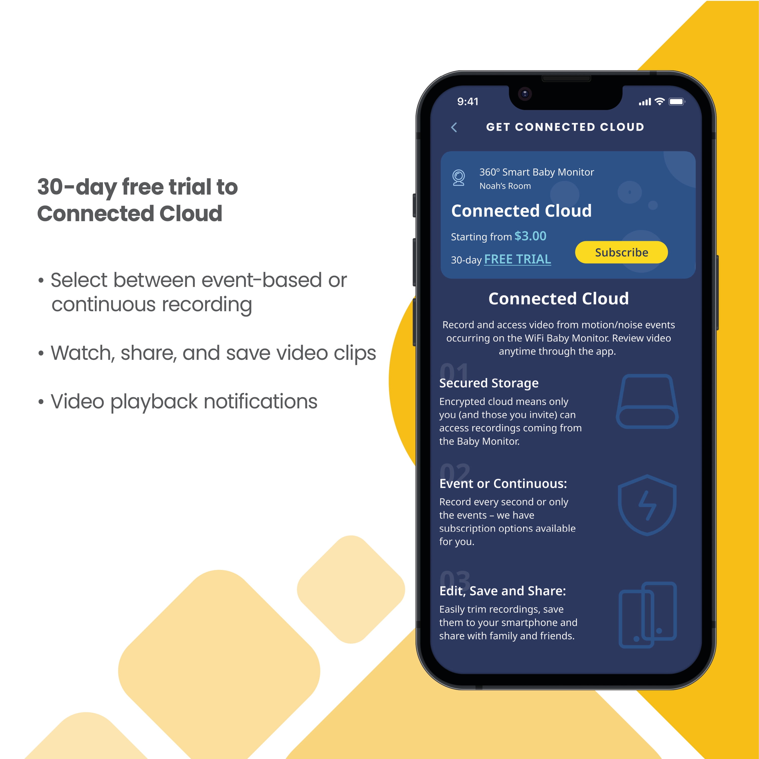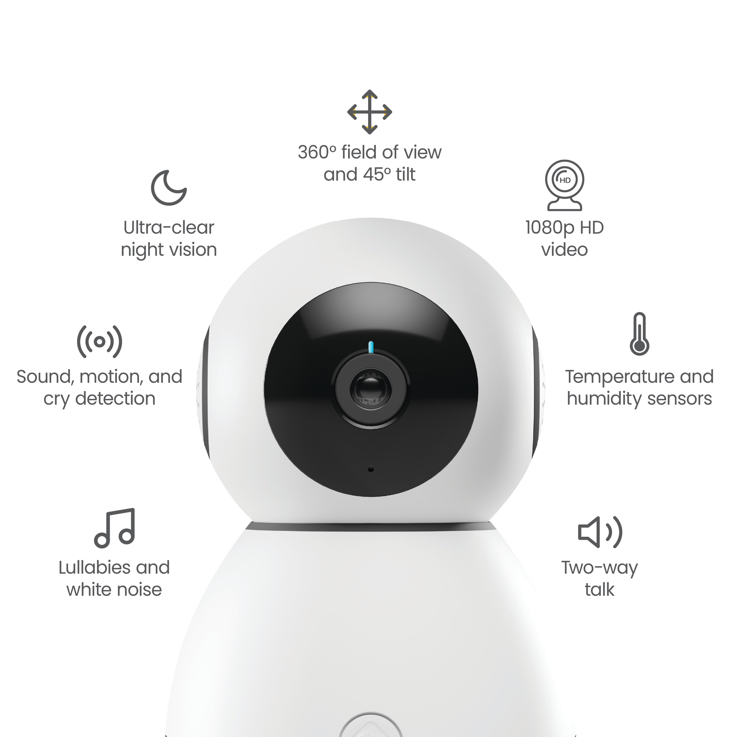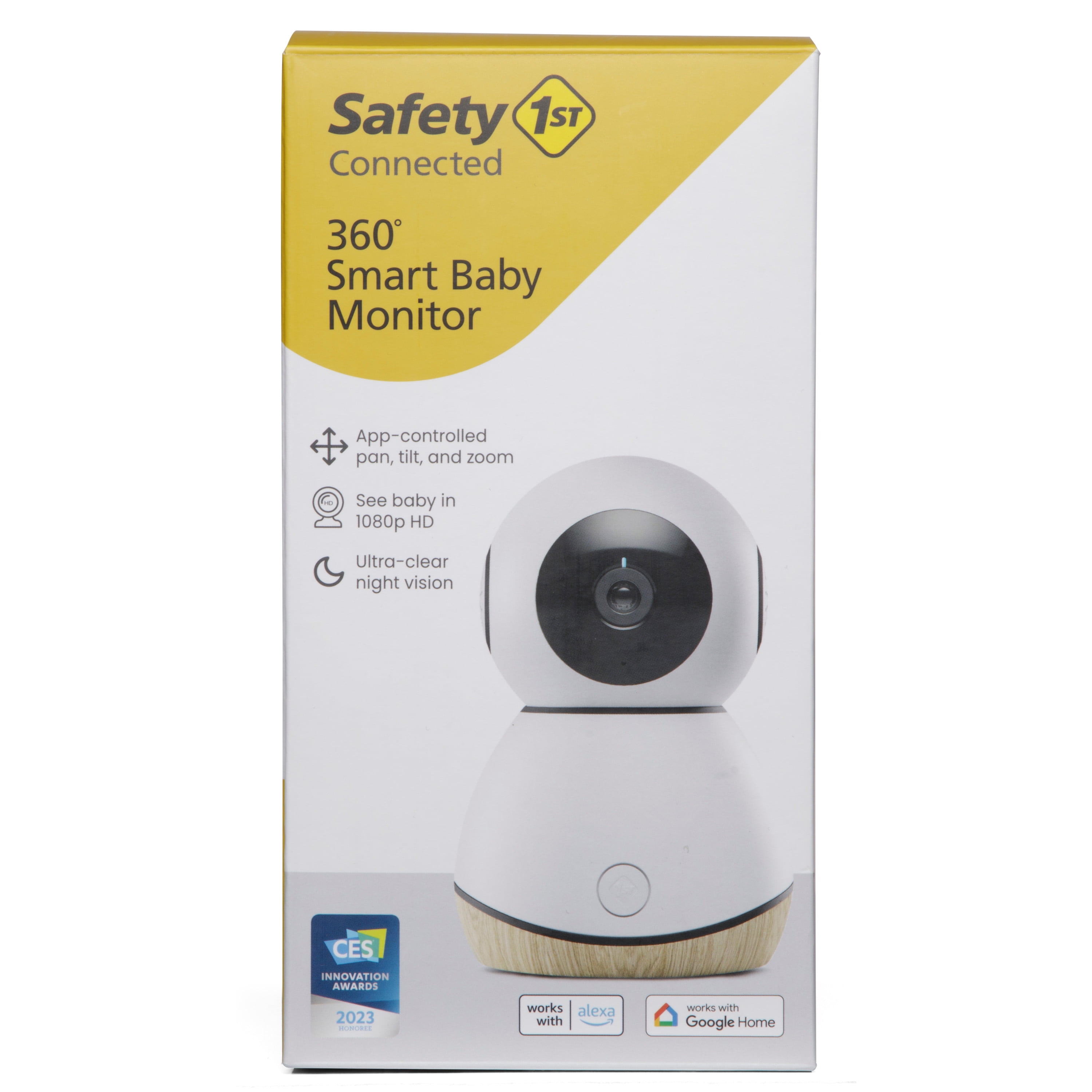 Safety 1st 360° Smart Baby Monitor, Natural with White 1080p HD live stream Remote-controlled pan, tilt, and zoom Daytime color & advanced ultra-clear night vision Intelligent cry detection Two-way talk Built-in soother with lullabies & white noise Temperature & humidity sensors Suitable for wall or tabletop with mounts & cord management hardware included Compatible with Google Home & Amazon Alexa Noise & motion detection Secure & shareable camera access Supports multi-monitor video sharing Background audio enabled Save videos with 30-day free trial to Connected Cloud or use Micro-SD card (not included) Compatible with iOS & Android