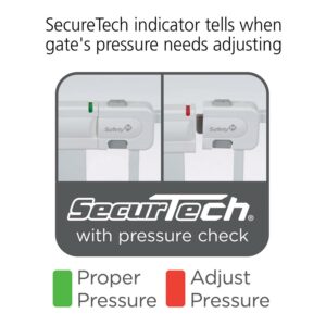 – SecureTech, Safety 1st s red-to-green indicator on the top rail allows you to see when your gate is securely locked.