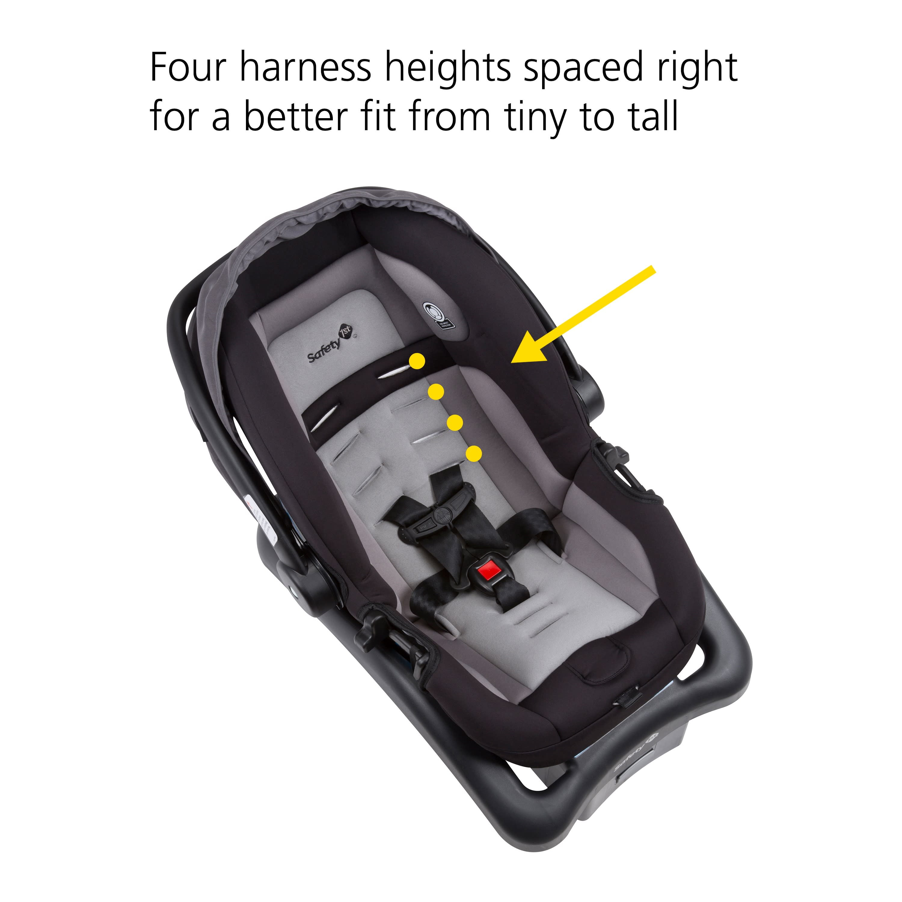 Rear-facing 4-35 pounds Ultra lightweight infant car seat with exceptional safety using next generation engineering Side Impact Protection with deep sides and energy absorbing materials 4 harness heights spaced right for a better fit from tiny to tall Extra newborn support with head and body inserts One pull harness adjustment gives baby a secure fit Adjustable base for the right fit to your car Machine washable and dryer safe seat pad