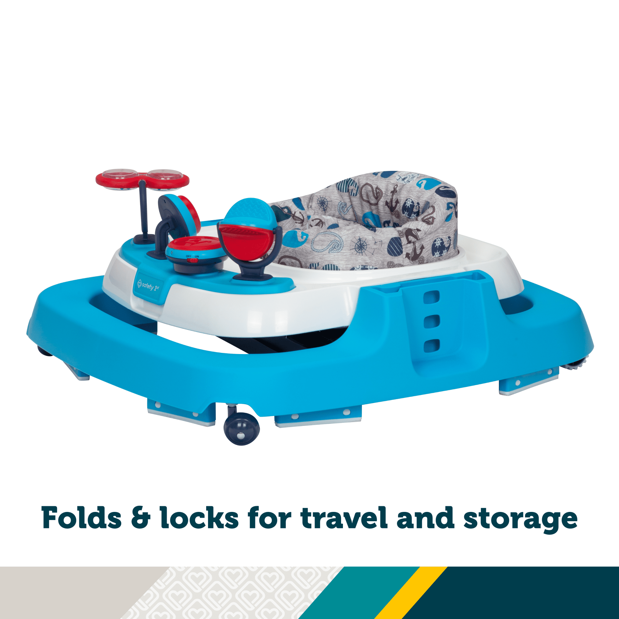 First steps are easier with our Ready, Set, Walk! DX Developmental Walker. Your little one can stretch their legs while being entertained with toys that provide sensory and tactile stimulation, and help develop gross motor skills, thinking and problem solving. The three-position height adjustment supports the growing height and size of your child, all while encouraging first steps. Plus, the extra-wide base provides added stability. This feature-rich child walker provides multiple developmental activities and 12 different songs designed to amuse and delight, while stimulating baby’s visual and auditory senses. It includes a large tray that’s great for snacks, with plenty of room for baby to play with toys. There’s no need to worry about messes with the easy-to-remove, machine-washable seat pad. The walker nests and locks together into a compact shape for storage or trips away from home. With a weight range up to 30 pounds, it’s an excellent option for babies getting ready to walk. The Ready, Set, Walk! DX Developmental Walker is for a child who can hold their head upright unassisted and who is not able to walk or climb out of the product. Safety 1st believes parenting should have fewer worries and more joyful moments. As the first and only leader in child safety, Safety 1st is here to give you peace of mind so you can spend less time worrying and more time enjoying every first you experience with your child.