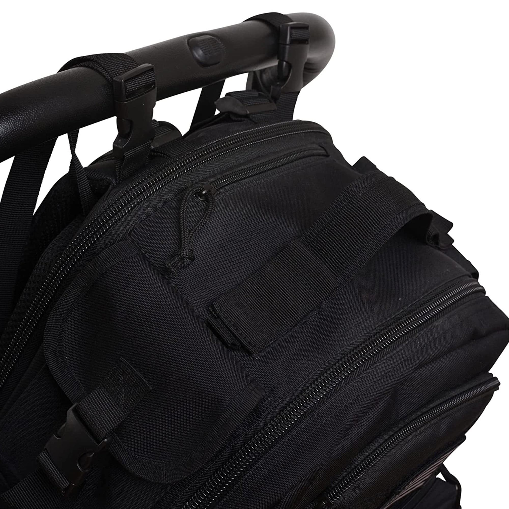Large 27 liter xl diaper bag backpack for carrying all baby essentials everywhere. A tactical diaper bag made from tough, military-grade 600D polyester for remarkable durability. Dad diaper bag with changing station (diaper changing mat) and camelback water bladder pouch. Quick-clip chest strap, adjustable stroller straps, and MOLLE webbing. Diaper bag with cooler compartment for food or bottles, 12 pockets including a dedicated baby wipe pocket and 2 big compartments. Water resistant mens diaper bag with breathable back padding for all-day comfort. Our Daddy bag Includes stroller straps for backpack diaper bags. Sager Creek diaper bags for baby boy work great as a diaper bag organizer. Color: Black.