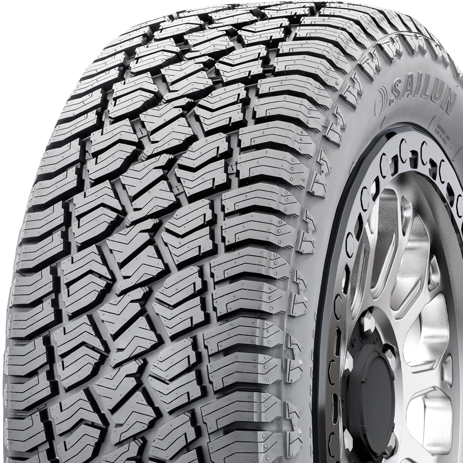Sailun TerraMax AT2 OVERVIEW The Sailun TerraMax AT2 is an all terrain, all weather tire made for light trucks and SUVs. Sailun offers a 50,000 mile treadwear warranty with this model. The aggressive tread design also increases the all terrain traction. The aggressive tread design and the durable rubber compound ensure great on-road and soft, loose, and uneven terrain grip. The optimized tread design ensures additional sideway biting edges, increasing its deep mud and loose dirt performance. Additionally, the tread design features mud and stone ejectors that keep the footprint clean. Mud and snow do not block surface contact, while stone retention is effectively prevented. Great handling and maneuvering are ensured with this model. The aggressive tread block placement manages to increase its surface contact. The tire manages to boost its steering responsiveness and driving stability, both on- and off-road. It promotes faster and more precise steering responses, while the structure is secured against driving pressure. The model offers great cornering and maneuvering as well. Cornering and braking are upgraded with the ideal tread elements, guaranteeing the driver’s control over the vehicle at all times. The reinforced internal structure and the durable rubber compound upgrade the model’s load durability and damage resistance. The reinforced internal structure maintains the ideal tire shape under pressure. This improves the tire’s overall load capacity during the performance. The durable rubber compound protects the tire from cuts, tears, and punctures. The special tread design and the rubber compound also upgrade the off-road traction, while offering damage resistance. This ensures external damage protection, increasing the tire’s lifetime. The Sailun TerraMax AT2 promotes great all weather traction. The all weather compound and the ideal tread design boost the dry, wet, and winter grip on the road. The tread’s siping and notch placement firmly grips the road with extra biting edges, while the compound keeps the rubber flexible in versatile temperatures. The groove pattern helps to prevent on-road hydroplaning by eliminating water and slush from the footprint, significantly upgrading the model’s wet-weather driving safety levels. All weather tires receive the three mountain peak and snowflake (3PMS) symbol for their exceptional winter weather performance. They are all season tires with extra winter weather grip, in order to guarantee safer year-round durability. This ensures their true and secure driving ability throughout the year. Not all tire sizes are suitable for all vehicle types. Please refer to the item specifications for accurate information about vehicle type fitment for this particular size. Manufacturers recommend changing tires every 10 years. As long as tires are properly stored before they are sold, the year of their manufacture will not shorten their service life.