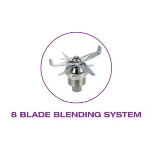 – Blends, crushes, emulsifies, chops, purées, liquifies WHOLE FRUITS & VEGETABLES, ice, frozen fruit & nuts