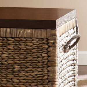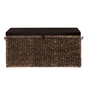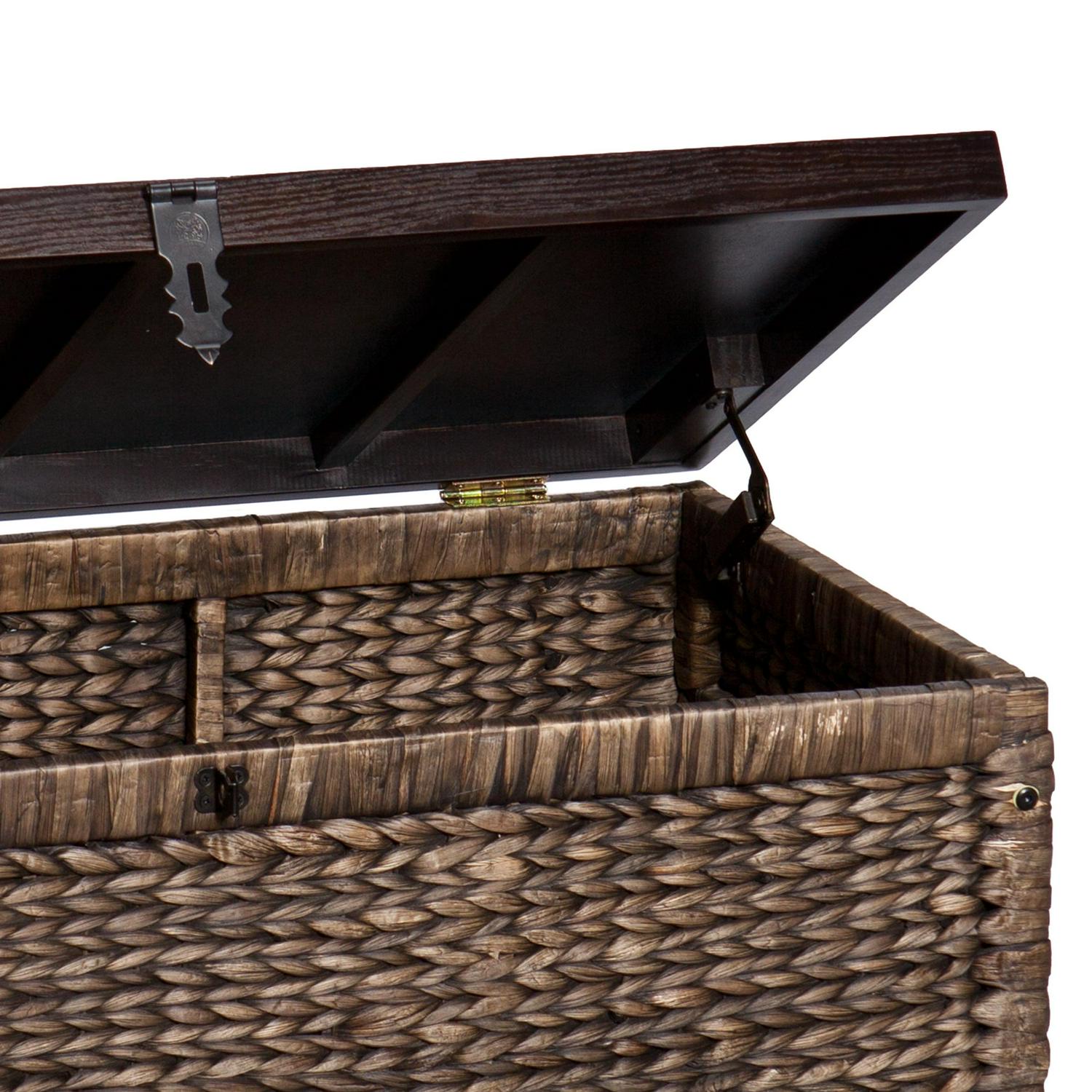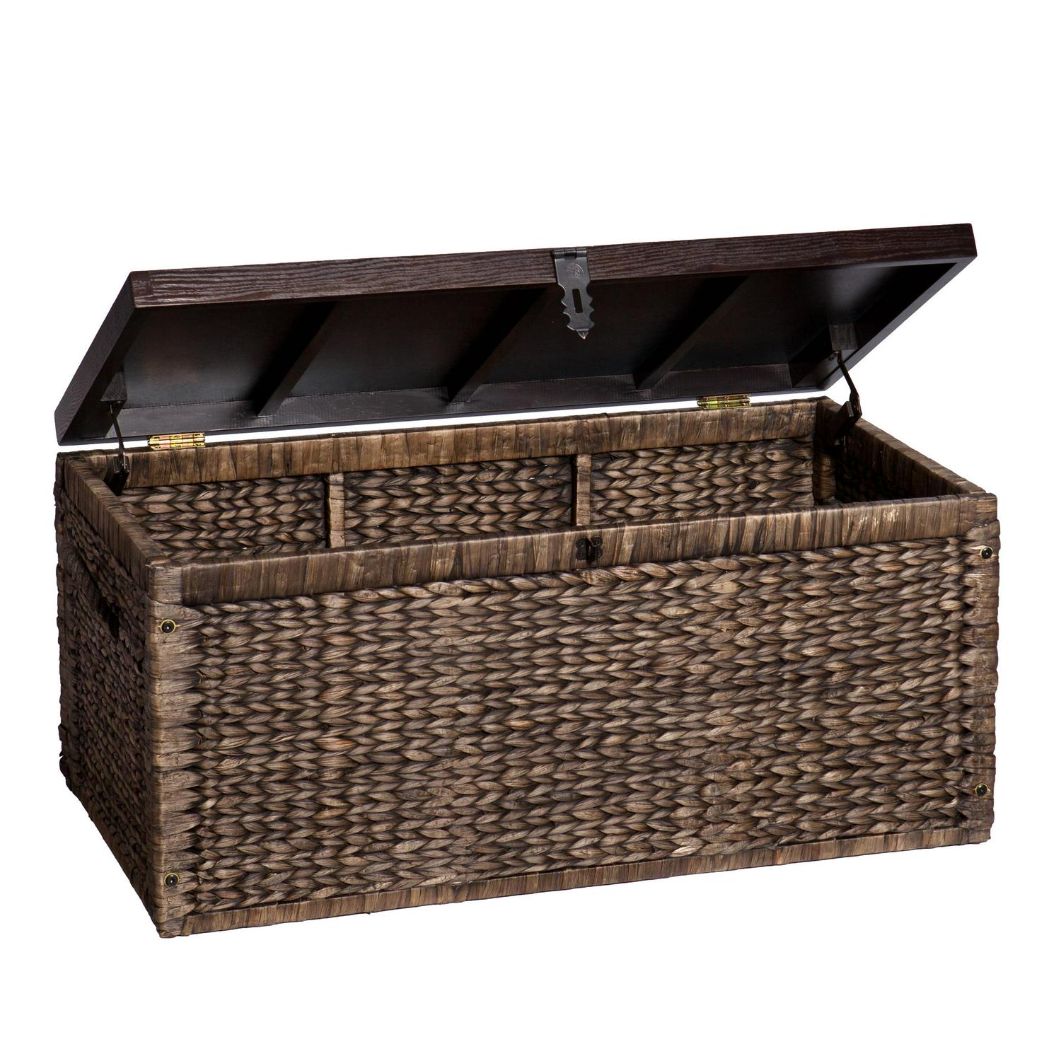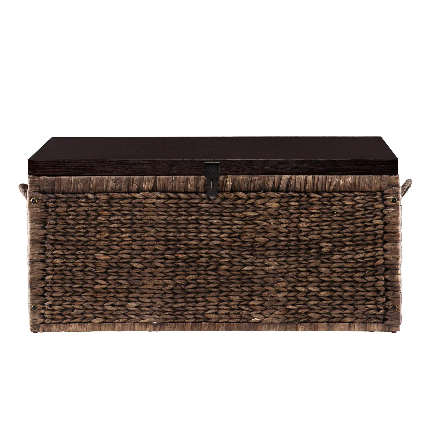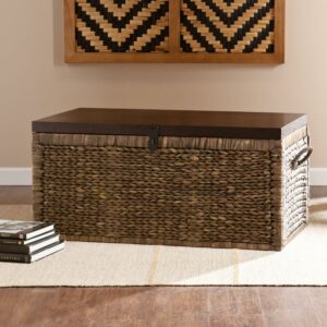 Invite rustic appeal into your home with the earthy, mixed materials of this anywhere storage trunk. Arrow weaved, blackwashed water hyacinth adds a subtle tropical feel to any room. Netral finish ensures your décor stands out while blending in. Espresso lid highlights the blackwashed trunk, accentuating the contrast of textures between the wood grain and water hyacinth. Use this storage trunk as a cocktail table while storing spare blankets or throw pillows, living room accessories, or even board games. Slight variations in finish may occur. From our family-owned company to your unique living space, SEI delivers a wide selection of quality furniture and home décor to complement your one-of-a-kind style. Orders received before 3pm local distribution center time for in stock items ship same business day.