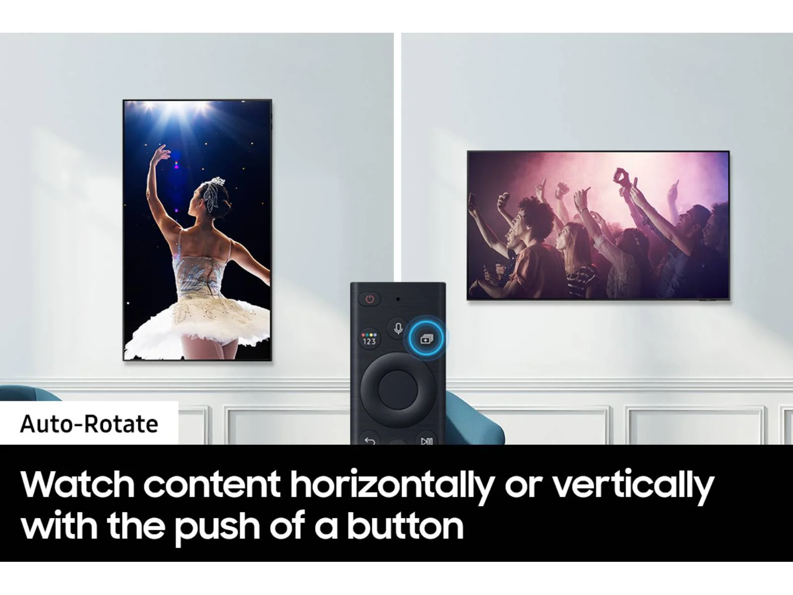 Watch content the way you like Enjoy your content vertically or horizontally, it’s your choice. Compatible Models 22 The Frame (LS03B) 65″ 22 NeoQLED 4K (QN95B) 55″/65″ 22 NeoQLED 8K (QN800B) 65″ 22 NeoQLED 8K (QN900B) 65″