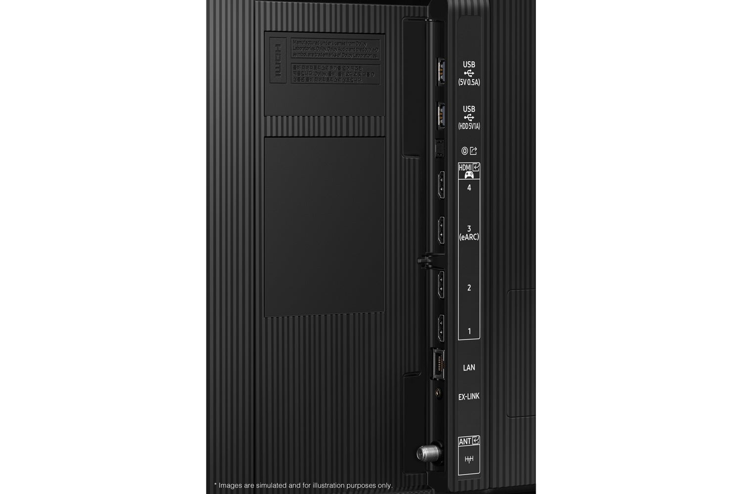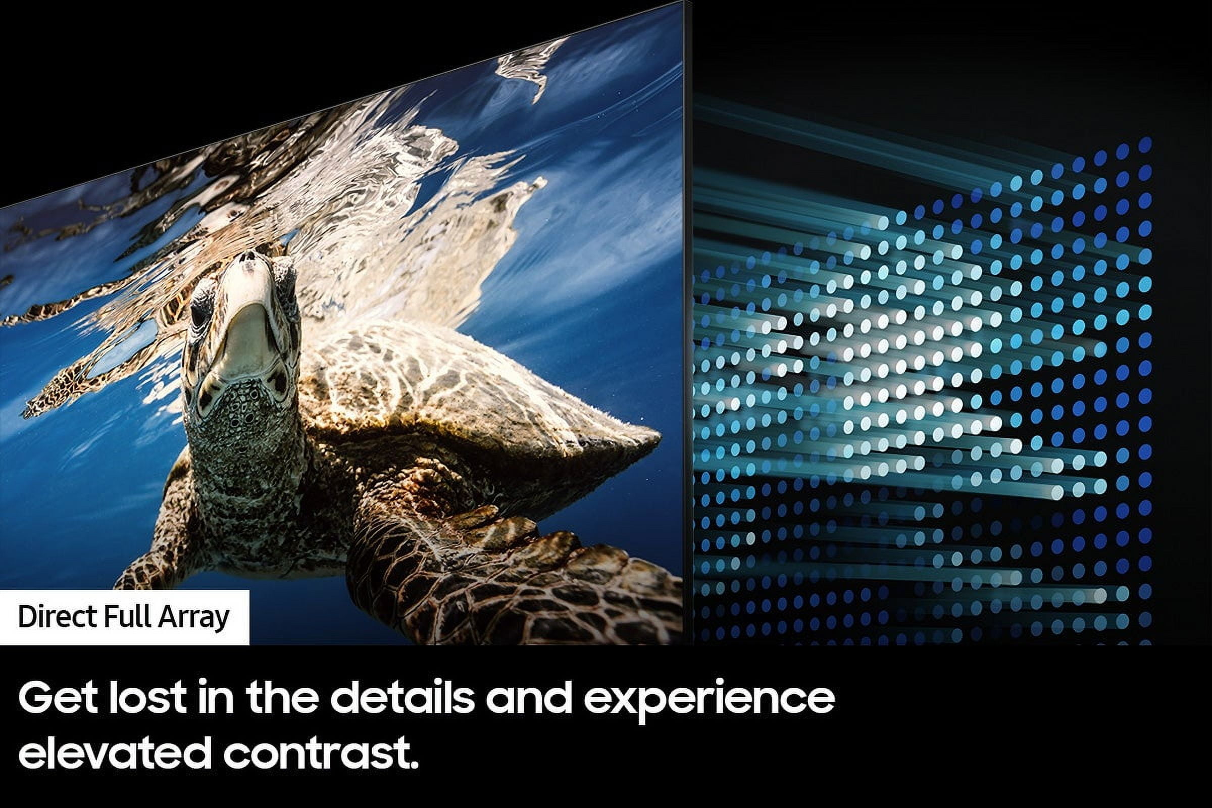 Direct Full Array – Super precise LEDs are the secret to this TV’s straight fire contrast. See incredible contrast even in sunlit rooms with our Direct Full Array technology that precisely controls the amount of lighting across every part of the picture. When you see, you know. Get caught up in the details as you experience the silver screen in a new way as the picture comes alive from your screen. Neural Quantum Processor with 4K Upscaling – Sit back and be mesmerized as your content is transformed to 4K. Whether you’re streaming an HD movie, watching live sports, or looking back at home videos, experience it all transformed into sharp 4K resolution with our high-performance, AI powered processor that upgrades your content scene by scene. Utilizing 20 specialized networks the AI-powered processor drives the intuitive Smart TV Hub, Dolby Atmos™ sound, and expertly upscaled 4K resolution. *Utilizes AI-Based formulas. Quantum HDR+ – Catching the latest releases on a big screen at home, instead of at the theater will feel even more like you are watching on the big screen with rich details and more immersive colors from the latest animated flick to the next new-world science fiction drama. Dial up the experience with Quantum HDR+ that analyzes and enhances each scene, delivering excellent brightness and a wide range of contrast. Dolby Atmos™ and Object Tracking Sound Lite – Get in the mix with Dolby Atmos and Object Tracking Sound Lite. You’ll hear 3D surround sound that follows the movement on screen using our incredible virtual top channel audio—putting you right in the middle of the car chase, stampede or party scene. 100% Color Volume with Quantum Dot – Max out your experience with 100% Color Volume. Take in a billion shades of unwavering color and enjoy vivid, lifelike color at any brightness level as Quantum Dot technology works to create every shade you see on screen— because even a clear blue sky can contain thousands of different colors. *100% color volume measured to DCI-P3 standard, certified by VDE. Q-Symphony 3.0 – Amp up your audio with the greatest duo of all time—Samsung TVs paired with a Samsung soundbar. With Q-Symphony, your TV speakers paired with Q-Series and S-Series soundbar operate as one. Together, they can optimize all the channels to bring you a masterfully orchestrated sound experience. It’s a completely next-level experience that even works with Object Tracking Sound for an extra layer of depth. *Q-Series and S-Series soundbars sold separately. Motion Xcelerator Turbo+(4K @120 Hz) – Why go slow when you can play smooth—even during super-fast gaming content. Samsung Gaming Hub – Widen your world of gaming instantly without a console. Gaming Hub is where gaming comes together–bringing the best of console games, streaming games and more–all in one place. With easier access to your favorite games, standalone apps and accessories – start playing faster than ever. *Content services may vary by regions and are subject to change without notifications. SolarCell Remote – Turn up the volume on sustainability with the innovative SolarCell Remote™. ConnecTime – Crowd-watch your favorites with your favorites on your big screen. *Additional compatible Samsung SlimFit cam, compatible Logitech webcam or mobile camera required. Sold separately. Requires Samsung account.