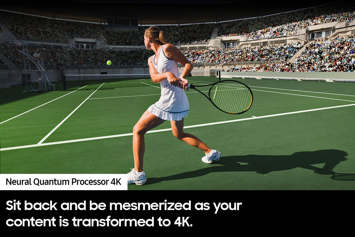 Don’t settle for basic. Punch up the contrast with super-precise LEDs and elevate the ordinary to something more impressive. Direct Full Array and Dolby Atmos™ technology headline Samsung QLED’s refined audio/visual experience. Previously unnoticed details are refined–revealing ultra-deep blacks, pure whites and more than a billion colors–using Quantum HDR+ and precision-controlled Direct Full Array technology. Not to mention the instant transformation to vivid 4K resolution completed by the powerful Quantum Processor. To add to the experience, you’ll get intense audio that moves with the action thanks to Dolby Atmos™® and Object Tracking Sound, as well as smooth visuals with less lag or motion blur created by Motion Xcelerator Turbo+.