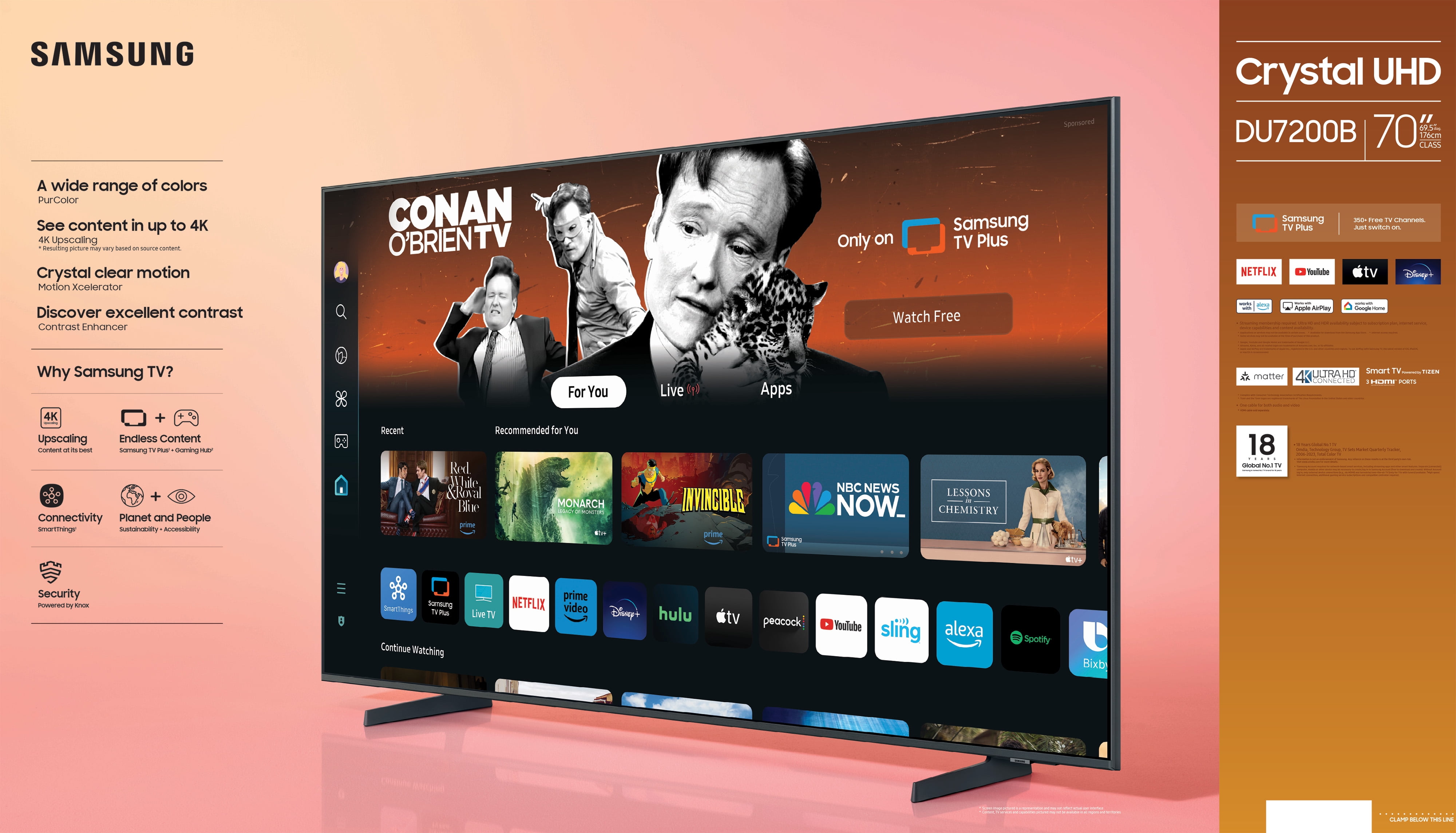 SAMSUNG 70″ Class DU7200B Crystal UHD 4K Smart Television UN70DU7200BXZA 2024