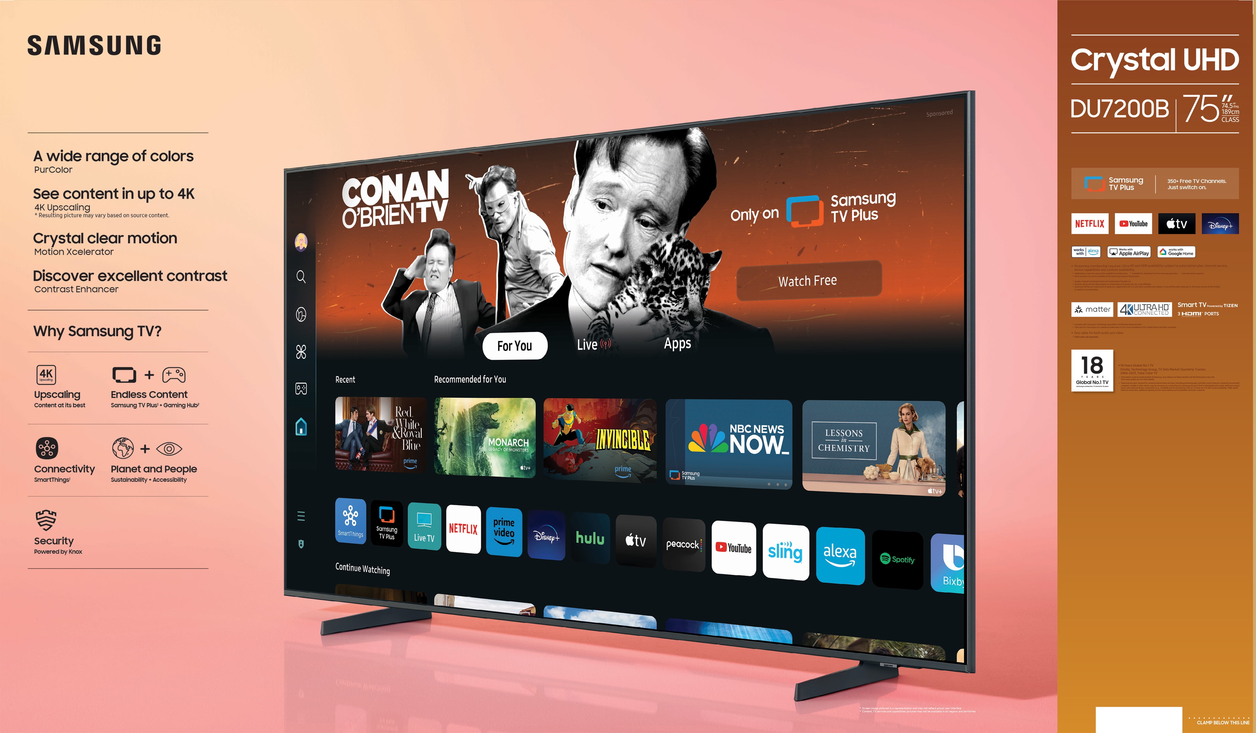 SAMSUNG 75” Class DU7200B Crystal UHD 4K Smart TV UN75DU7200BXZA 2024