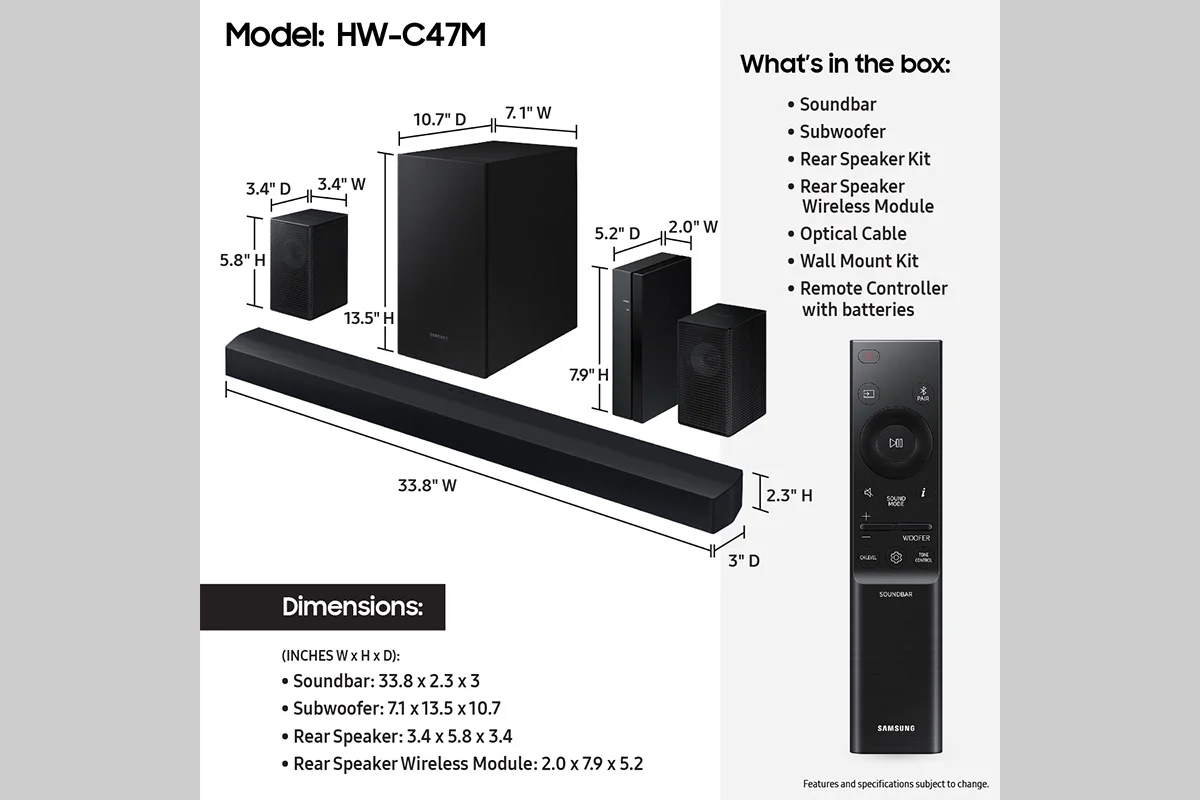 SAMSUNG B-Series 4.1.CH Soundbar & Rear Speakers with Subwoofer, Bluetooth, HW-C47M/ZA 2023