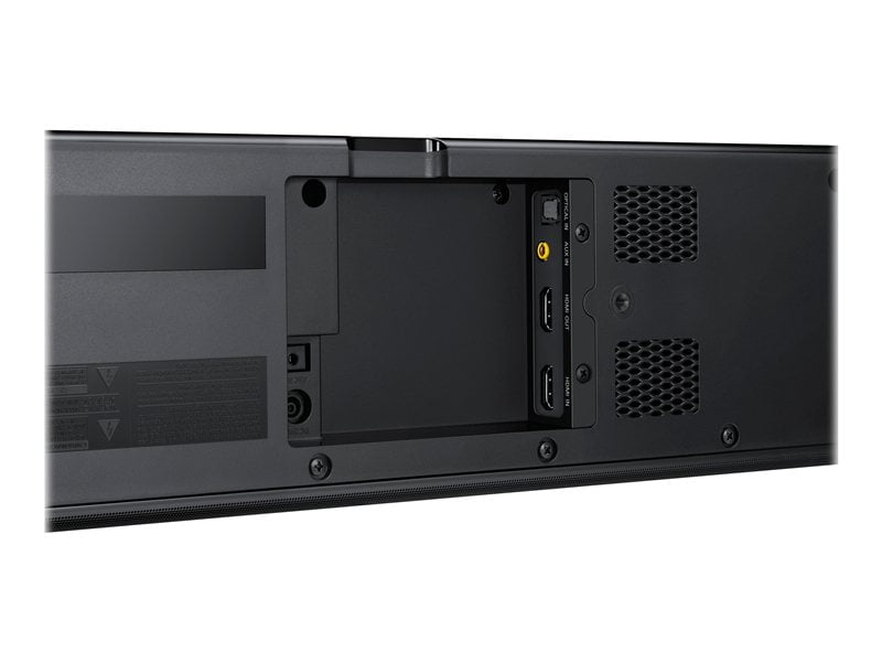Key Features and Benefits: The Perfect Soundbar for Big-screen Action Introducing the Samsung Soundbar built specifically for our larger TV screen sizes (60 or more). Our innovative circuitry combines Vacuum Tubes and a Digital Amp. Wirelessly connect your Soundbar and 8 subwoofer to your TV. Plus effortlessly stream music from other devices via Bluetooth . The sleek metal design pairs well with your TV and the warm glow of the vacuum tubes adds a stylish touch. Vacuum Tube and Digital Sound Enjoy more lifelike sound with Vacuum Tube and Digital Sound. Hear your favorite music for the first time with the innovation of analog and digital sound combined. It creates a truer, more immersive sound that digital alone cannot replicate. Samsung has brought wonder to your eyes, now its time for your ears. Auto Sound Calibration Auto Sound Calibration can easily optimize your room by automatically adjusting audio settings based on the distance the speakers are place from the listening area in your room. Slim Premium Metal Design The slim, premium metal design and the warm glow of the vacuum tubes add a stylish touch perfectly designed to complement your TV and room. TV Sound On When used with a Samsung TV, you will be able to power on the Soundbar and control the volume right from the TV remote. Wireless Active Subwoofer Enhance your TV experience and feel the power of tight, thundering bass when youre watching your favorite movies and shows. The Wireless Active Subwoofer adds powerful bass from anywhere in the room and gives you a truly rich sound experience.