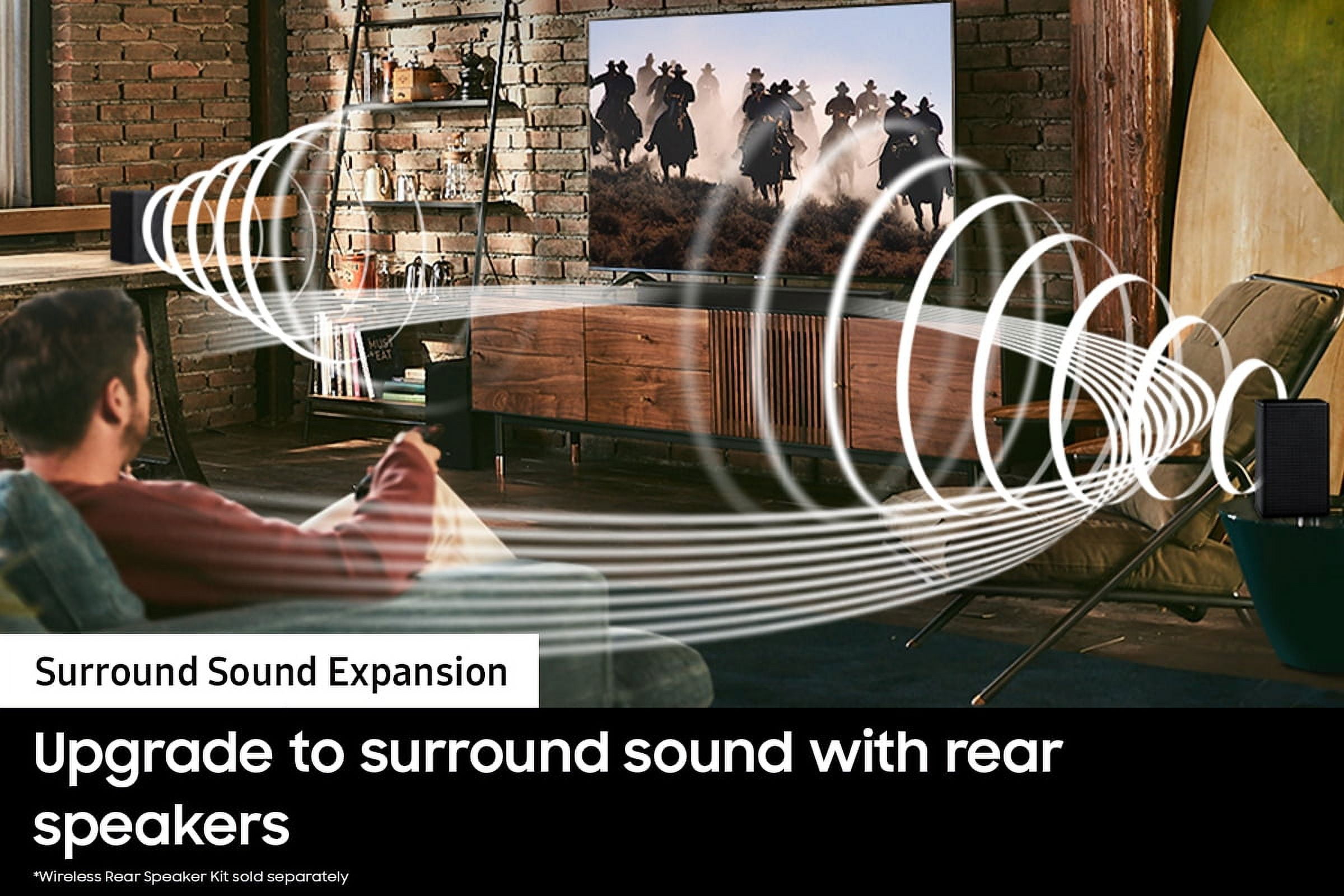 Enjoy theater quality 3D sound which recreates sound all around you using the latest acoustic technologies. Perfectly synchronized audio uses every speaker in compatible Samsung TV and soundbars. Game Mode optimizes your gaming experience with synced, directional audio. Set up is a breeze. Easily connect your soundbar to your TV wirelessly. Engulf yourself in sound with wide range audio no matter where you’re sitting. Play your music or podcasts from your mobile device to your soundbar with a simple tap. Connect two smart devices simultaneously and share the sound tower with ease. No more jumping back and forth, just deciding what’s next. Get pulled further into the scene of your favorite movies, games and sporting events, with a wider range of panoramic sound that moves precisely with the action onscreen.