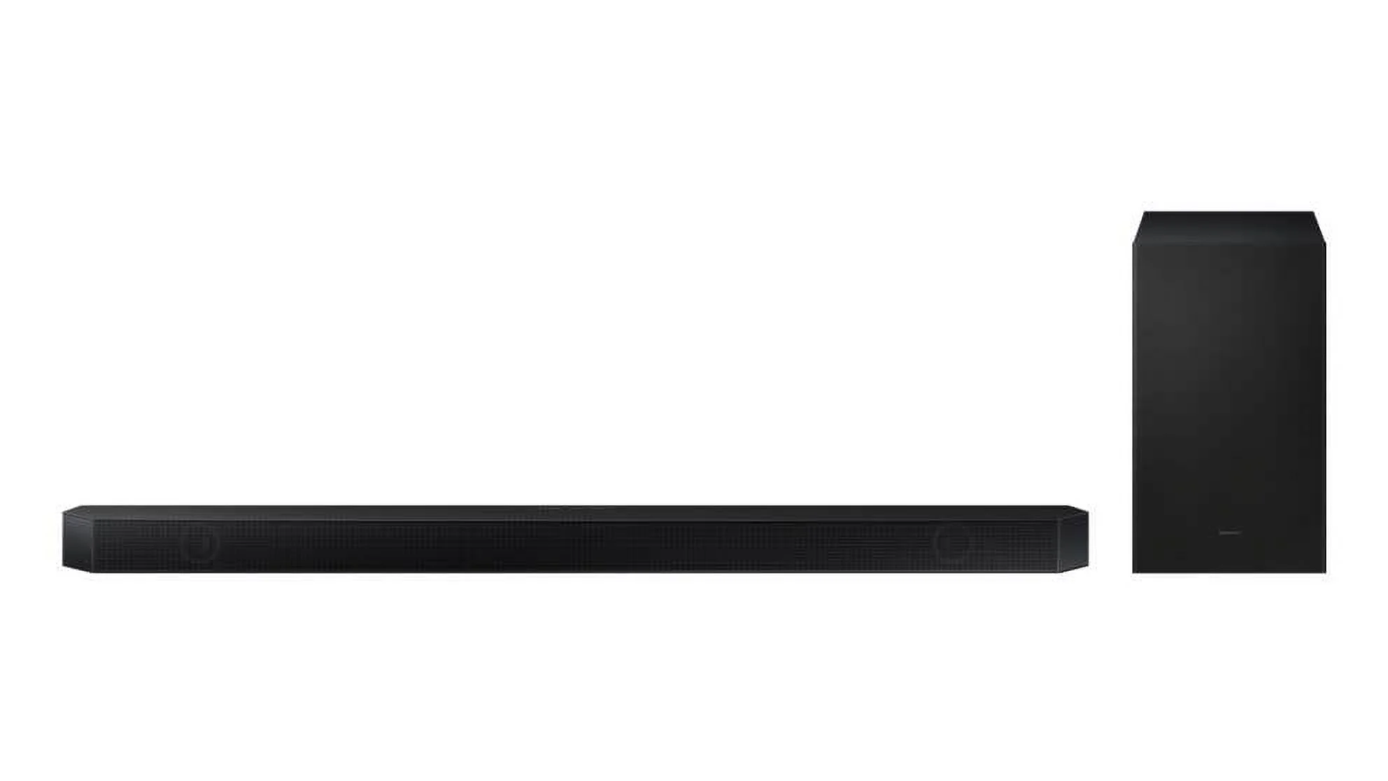 Surround yourself in multi-layered surround sound with the Q700B. Enjoy Dolby Atmos sound from above and around without requiring HDMI cables. Experience immersive, cinematic experience with 3 channels, a powerful subwoofer, and 2 up-firing speakers. Sound is automatically optimized to fit your surroundings with SpaceFitSound.** With Q-Symphony, the soundbar sound synchronizes with all of the internal speakers in your compatible Samsung TV to enrich the audio even further. And if you need to adjust the volume or listen to your favorite song, just direct a simple voice command using your favorite voice assistant.