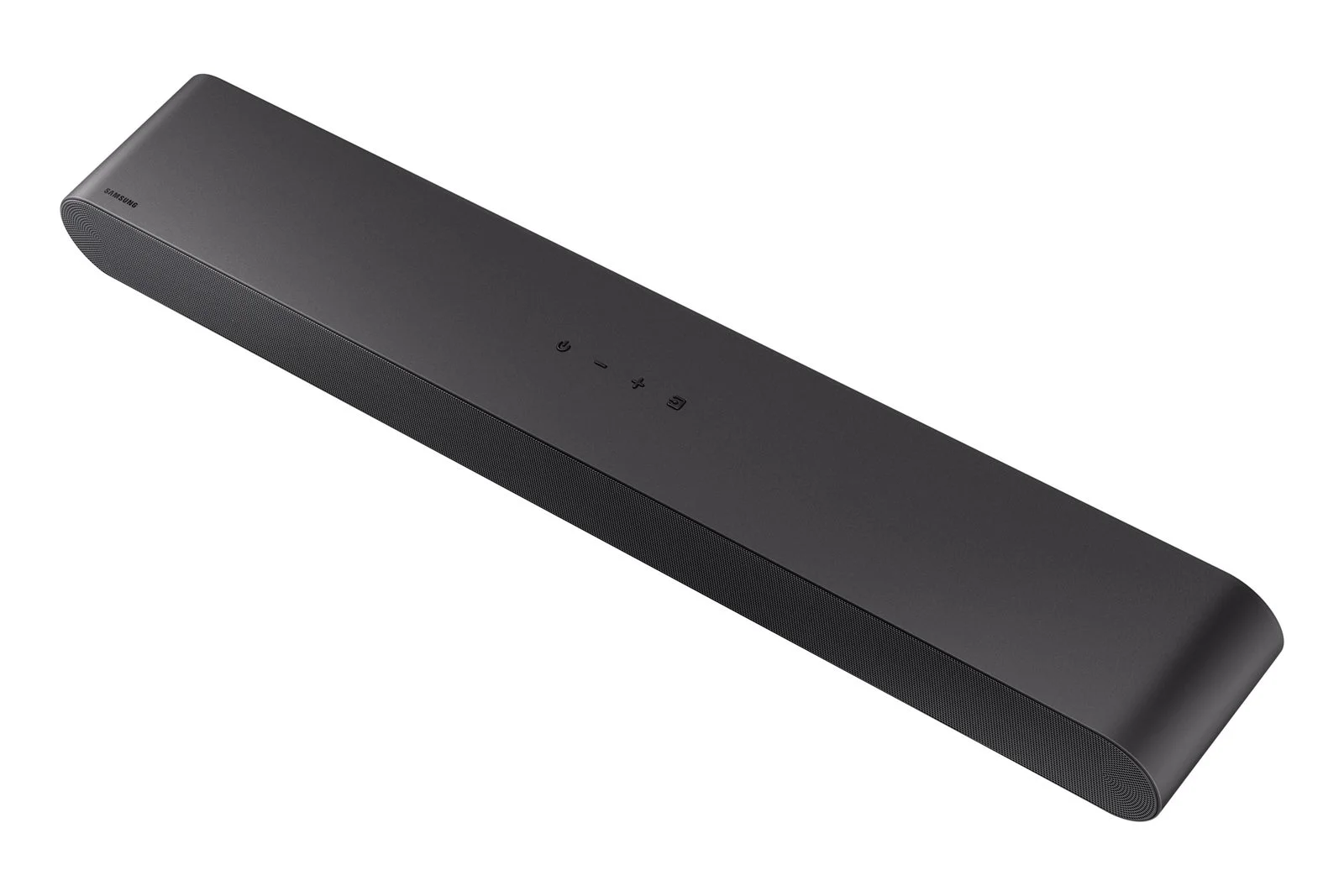 All-In-One: Everything you need in a single soundbar with two woofers and tweeters built in, so you can enjoy rich sound that will fill your room. Dolby Digital 5.1 / DTS Virtual:X: You’ll be truly captivated with multi-directional sound that draws you into the action with Dolby Digital 5.1 capable and DTS Virtual X. Dolby Digital 5.1 creates realistic surround sound by projecting it from all around you, while DTS Virtual: X expands your listening experience without having to add extra speakers – putting you at the center of every epic battle and heart-stopping car chase. Q-Symphony: Perfectly synchronized, fully immersive audio floods your room all at once, using every speaker in compatible Samsung TV and soundbars. *Q-Symphony is compatible with select 2020 and up Samsung TVs. Please refer to samsung.com for more information. Soundbar must be connected to TV via HDMI, optical cable or Wi-Fi to enable Q-Symphony function. Built-in Center Speaker: The built-in center speaker is dedicated to delivering enhanced dialogue so you won’t miss a word, no matter how faint the conversation or how intense the background music or action is. Adaptive Sound Lite: Enjoy dynamically optimized audio with enhanced voice clarity so you can follow along with action-packed games and blockbuster films. Music Mode: Experience vocals and instruments in studio-grade clarity, allowing you to hear every note as the artists intended. Bluetooth Multi-Connection: Connect two smart devices at the same time so you can conveniently switch and play songs from different devices. *Soundbar mobile connection is not available when connected to the TV. Requires Bluetooth compatible devices. Tap Sound: Play your music or podcasts from your mobile device to your soundbar with a simple tap. *Tap sound is only compatible with select Samsung mobile devices, with Android 8.1 and above. Tap Sound requires SmartThings app to activate and set up. This service only works when Soundbar and mobile are on.