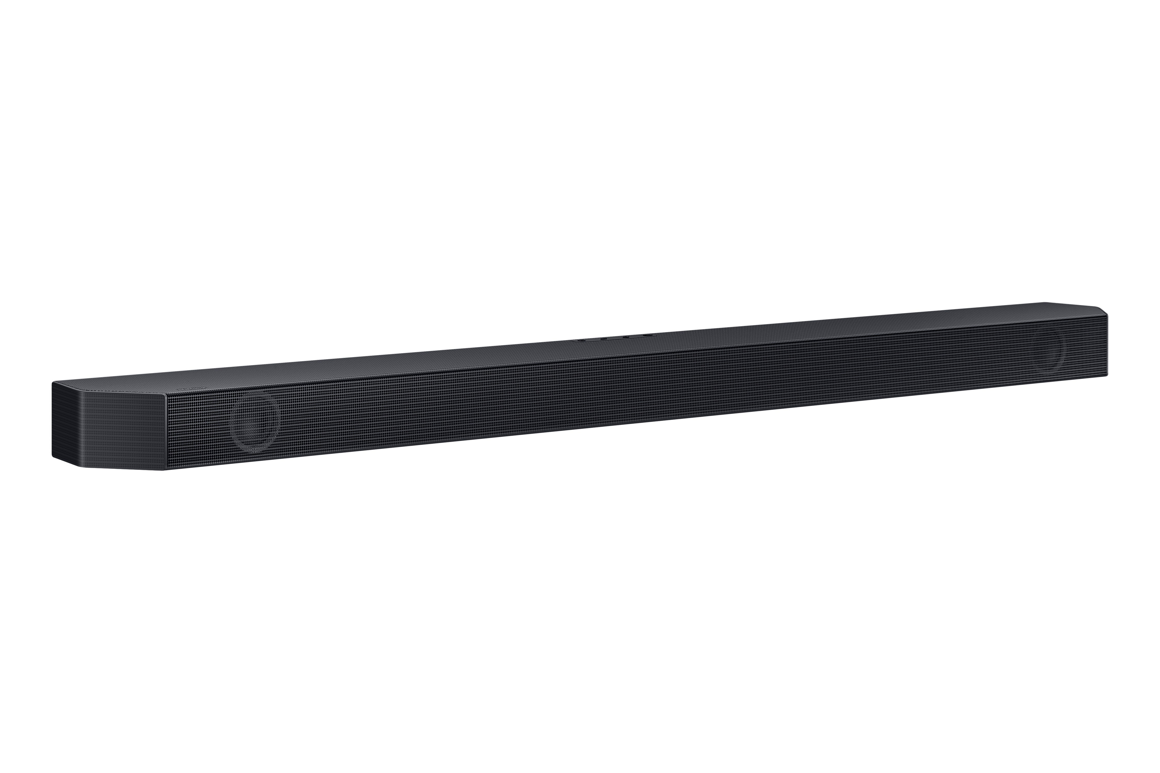 Q-SYMPHONY – Amp up your audio with the greatest duo of all time—Samsung TVs paired with Samsung soundbars. With Q-Symphony, the Q-Series soundbars pair with your TV speakers to operate as one. Together, they can optimize all the channels to bring you a masterfully orchestrated sound experience. *Q-Symphony is compatible with select 2020 – 2023 Samsung TV’s. Please refer to samsung.com for more information. 3.1CH DOLBY ATMOS SOUND – Three must be a magic number. When you make the jump to three channels, your audio comes alive. Experience captivating sound and hear more during your favorite shows, songs and movies with 3.1ch Dolby ATMOS sound. ADAPTIVE SOUND LITE – Adaptive Sound Lite enhances whatever you are watching. Enjoy all your favorite video content with dynamically optimized audio and enhanced voice clarity so you can follow along with actionpacked games and blockbuster films. HDMI eARC – This single HDMI cable connection passes advanced audio like Dolby ATMOS from your TV to your soundbar. One cable is all you need for a high-quality connection that won’t degrade your sound. *Requires an HDMI eARC compatible TV. GAME MODE – Optimize your gaming experience with perfectly synced directional audio that moves with the onscreen action. Game Mode eliminates distractions so you can hear better and play harder. So next time the game is on the line, you’ll have a leg up on the competition. *Compatible with Gaming Hub and select gaming consoles (e.g. Xbox X, PS5). Game console sold separately. BLUETOOTH MULTI-CONNECTION – No more unpairing as you trade off control. Connect two smart devices simultaneously and share the soundbar with ease. *Requires a Bluetooth compatible TV. TAP SOUND – Around here, streaming music from your phone to your soundbar is simple as that. Just tap the soundbar with your phone and start listening. It’s mirroring that works like magic. *Tap sound is only compatible with select Samsung mobile devices, with Android 8.1 and above. Tap Sound requires SmartThings app to activate and set up. This service only works when Soundbar and mobile are on. ONE REMOTE CONTROL – Keep your finger on the pulse. This do-it-all remote controls both your Samsung TV and soundbar, helping you streamline your home entertainment setup. WIRELESS SURROUND SOUND COMPATIBLE – Samsung has all the speakers you need to take your setup to the next level. When you want to go full wireless surround sound, this soundbar is ready. Connect easily and seamlessly to optional Samsung speakers. *Optional Samsung speakers sold separately. SAMSUNG AUDIO LAB – This soundbar was created by the sound-obsessed engineers at the Samsung Audio Lab. Components and features are designed, developed, tested and refined to enhance your home audio experience. You’ll hear the passion we put into it.
