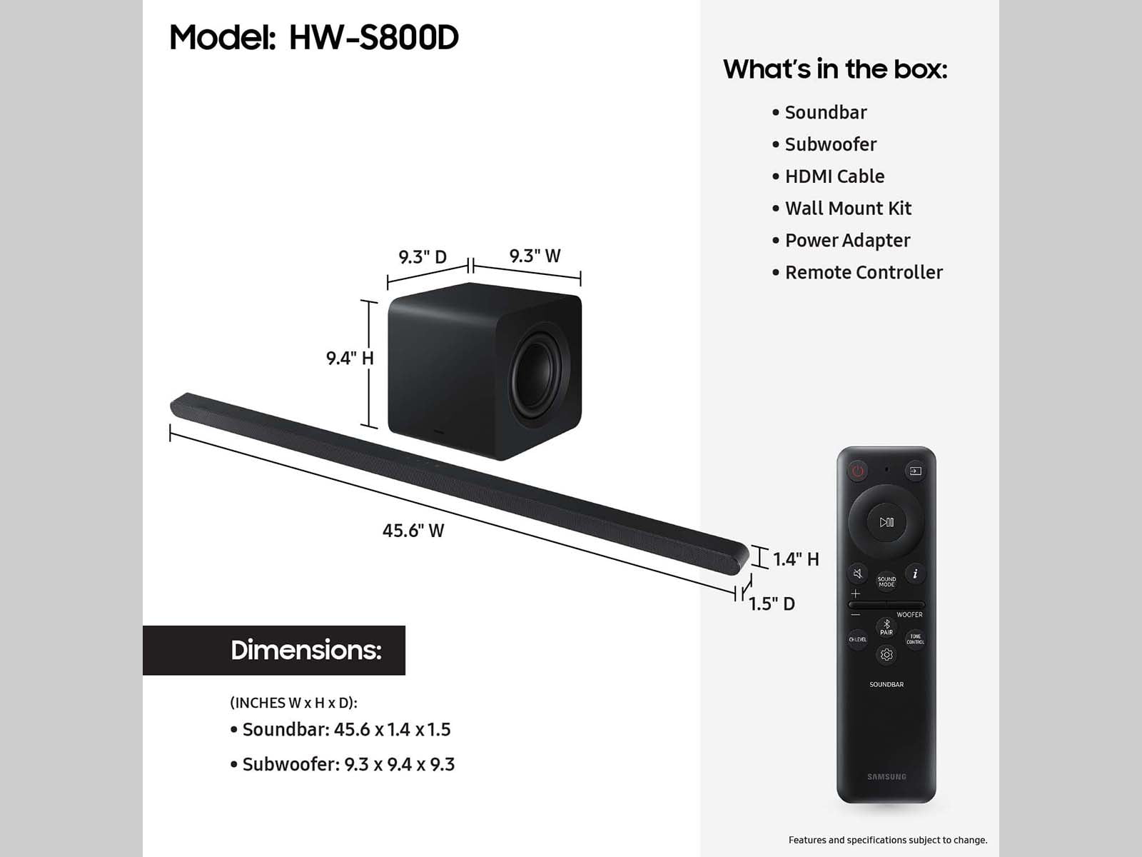 From Wireless Dolby Atmos to sound calibrated to fit your space, the Samsung Ultra-slim 3.1.2ch Wireless Dobly ATMOS Soundbar w/ Q-Symphony HW-S800D/ZA delivers a rich audio experience with style and features set to impress.