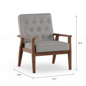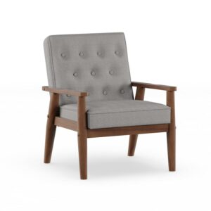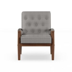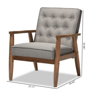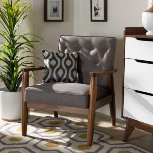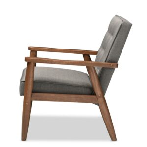 Samu Mid-Century Retro Modern Grey Fabric Upholstered Wooden Lounge Chair by Bellamy Studios