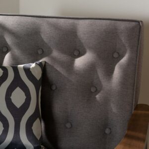 A simple, post-modern design that works well with a variety of styles, the Sorrento lounge chair is upholstered in grey fabric with solid rubberwood legs and frame. The sculptural arms and wide, welcoming seat are a throwback to classic 1950s and 60s Danish design. A fully upholstered seat with exposed dark walnut wood looks great from all angles, whether in a lounge arrangement, public waiting area or private office. The splayed legs and button-tufting design add a retro modern touch to this piece of clean lines furniture. The Sorrento also features light weight and easy handling. It will be suitable for those urban dwellers with limited space. It could be a cool-looking reading nook within 30 minutes of assembly out of a box. Made in Malaysia, the Sorrento will be a standout piece in any modern interior.