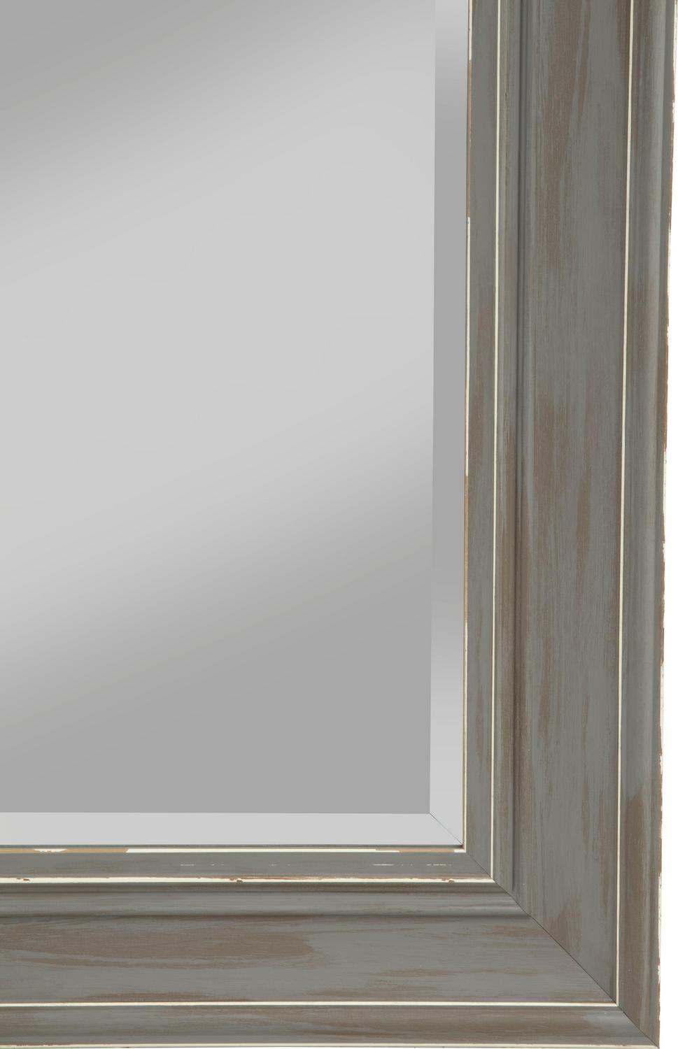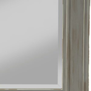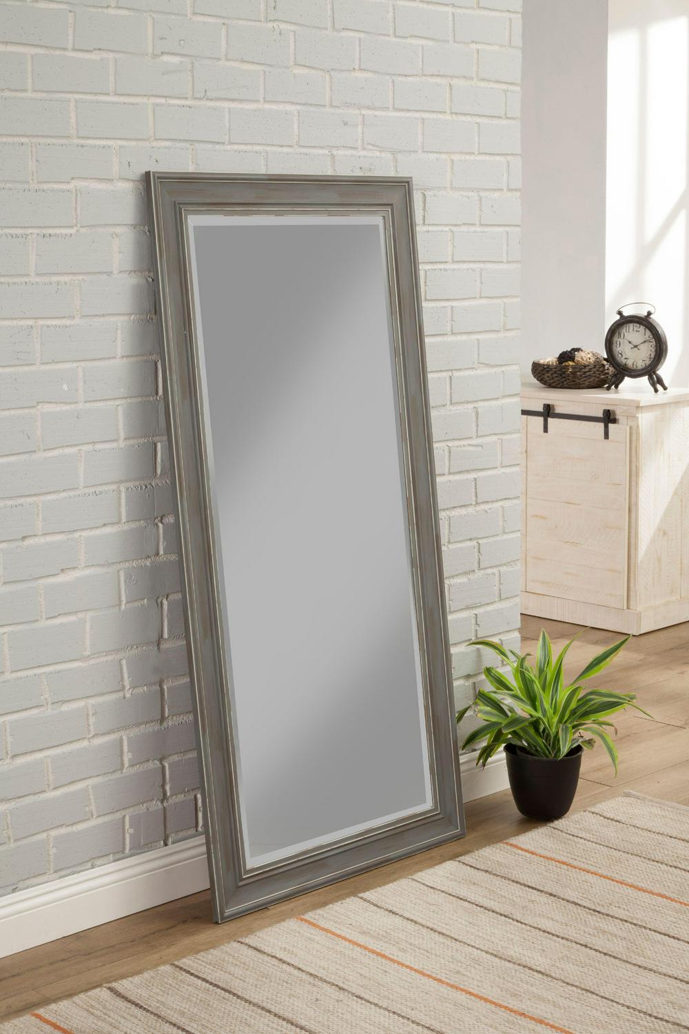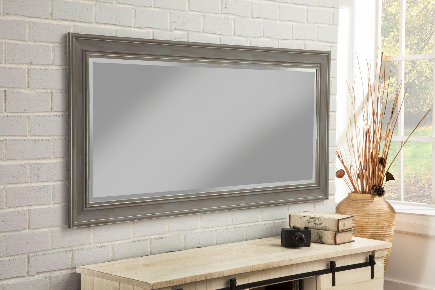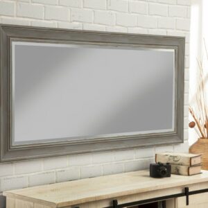 The worn Antique Gray finish of the Farmhouse Mirror Collection adds timeless country style and rustic flair to any room in the home. The frame’s antique finish is reminiscent of an old weathered barn. The beveled glass adds a touch of softness to the overall look of the mirror. Perfect to be used as a floor leaner mirror or a wall mounted mirror for the living room, bedroom, entryway, hallway, or bathroom. D-ring brackets are attached to the back for easy wall mounting without the use of a wire. Includes Anti-Tip hardware kit for added safety. Overall dimensions: 65 inches long x 31 inches wide x 2 inch deep; glass dimensions: 58 inches long x 24 inches wide. Product materials: Glass, Polystyrene.